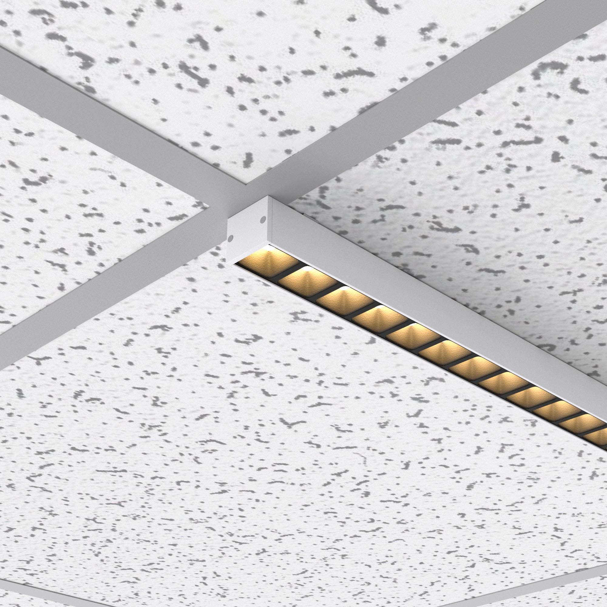Светодиодный светильник для направляющих потолка Армстронг шириной 15 и 24 мм. Мощность 14 Вт, св. поток 1460 лм, 94 лм/Вт, теплый 3000K, CRI>80, угол 80°, напряжение питания 48 В. Белый квадратный корпус из алюминия, экран PC, степень защиты IP40. Размер: длина 600 мм, ширина 25 мм, высота 28 мм. Монтаж накладной. Драйвер поставляется отдельно.