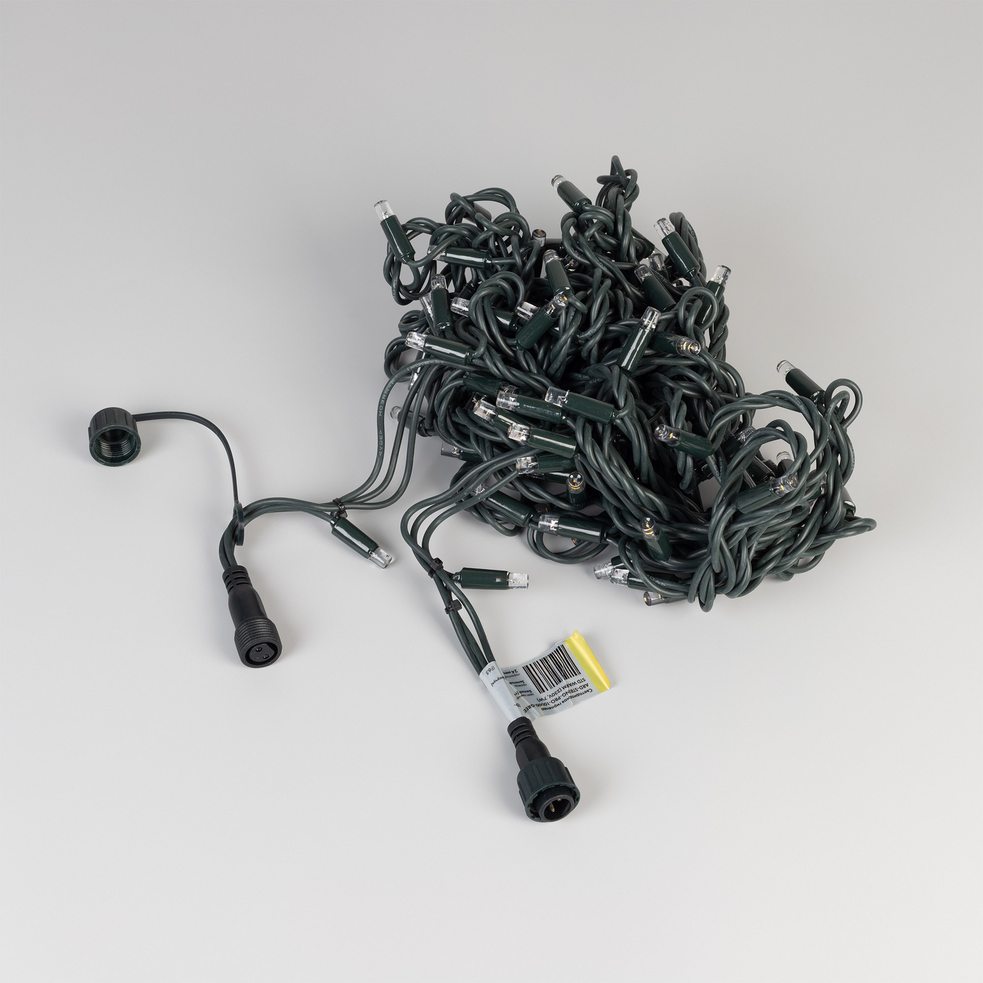 Универсальная светодиодная гирлянда "НИТЬ" серии Pro, предназначенная для декорирования и создания праздничного настроения как внутри помещений, так и снаружи (степень пылевлагозащиты IP65 позволяет размещать гирлянду на улице под навесом). Имея длину 10000 мм, она может использоваться для оформления средних и больших площадей. Универсальные соединительные разъемы позволяют наращивать длину до 50 м без использования дополнительных аксессуаров. Прозрачная вогнутая линза и эффект медленного мерцания каждого светодиода обеспечивают яркое, динамичное освещение, выделяя украшаемые объекты. Тёплый белый свет помогает создать необходимую атмосферу для декоративного объекта. Провод изготовлен из каучука и окрашен в темно-зеленый цвет. Аксессуары для подключения и управления приобретаются отдельно.