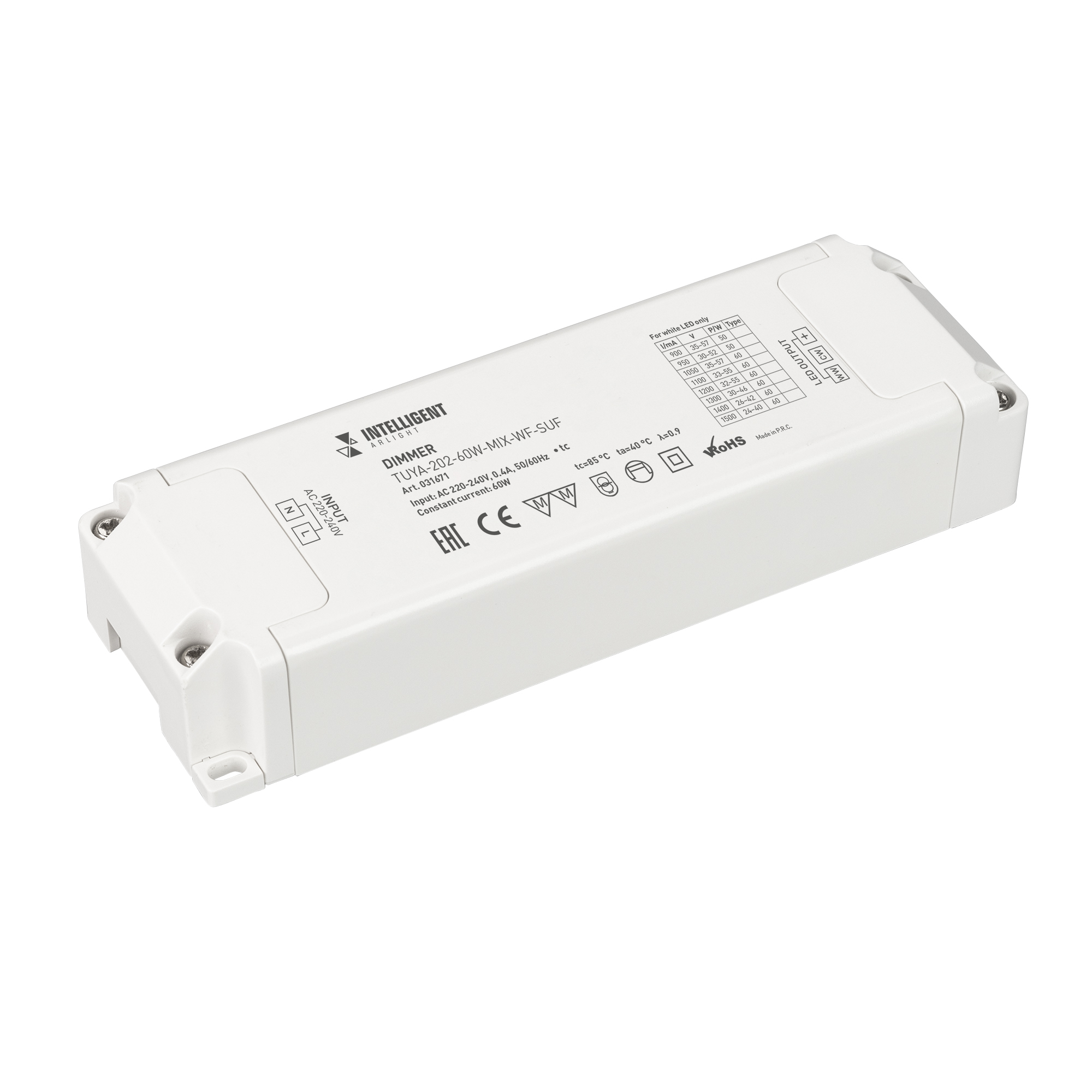 INTELLIGENT ARLIGHT Диммер TUYA-202-60W-MIX-WF-SUF (230V, 433MHz, 900-1500mA) (IARL, -)