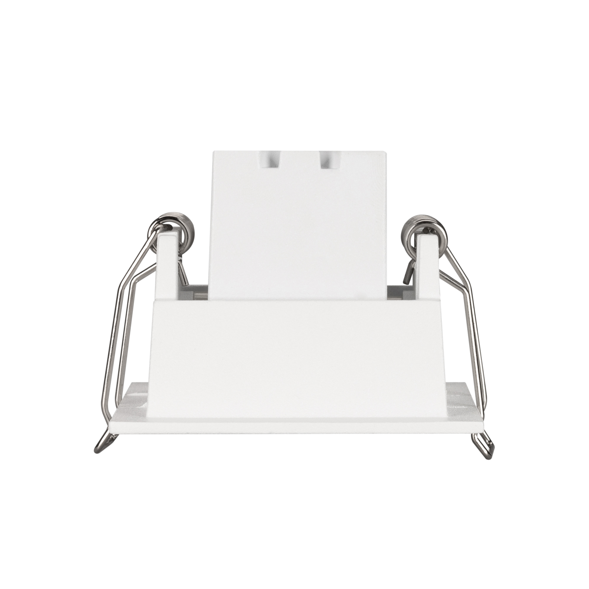 Встраиваемый поворотный светильник. Мощность 3 Вт, св. поток 180 лм, 60 лм/Вт, дневной 4000 K, CRI>98, угол 30°, напряжение питания 230 В. Белый прямоугольный корпус из алюминия, экран PMMA, степень защиты IP20. Размер: длина 67 мм, ширина 67 мм, высота 50 мм. Монтаж встраиваемый, установочное отверстие длина 60 мм, ширина 60 мм. Драйвер 3-12 В, 500 мА, пульсация <1%.