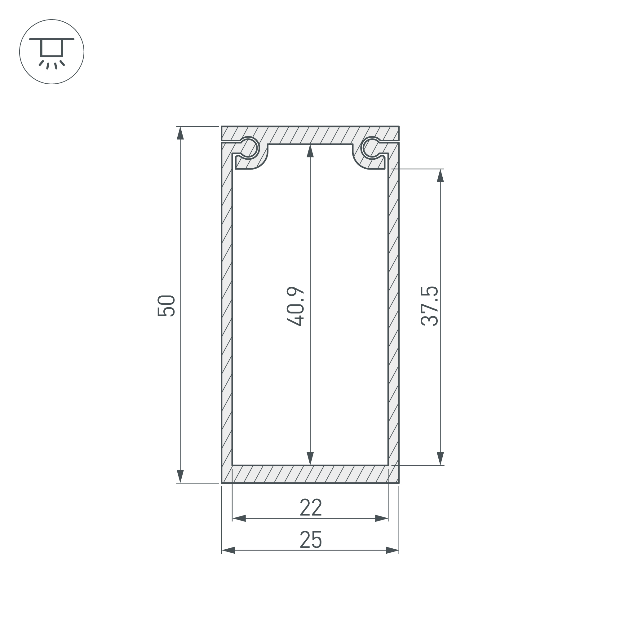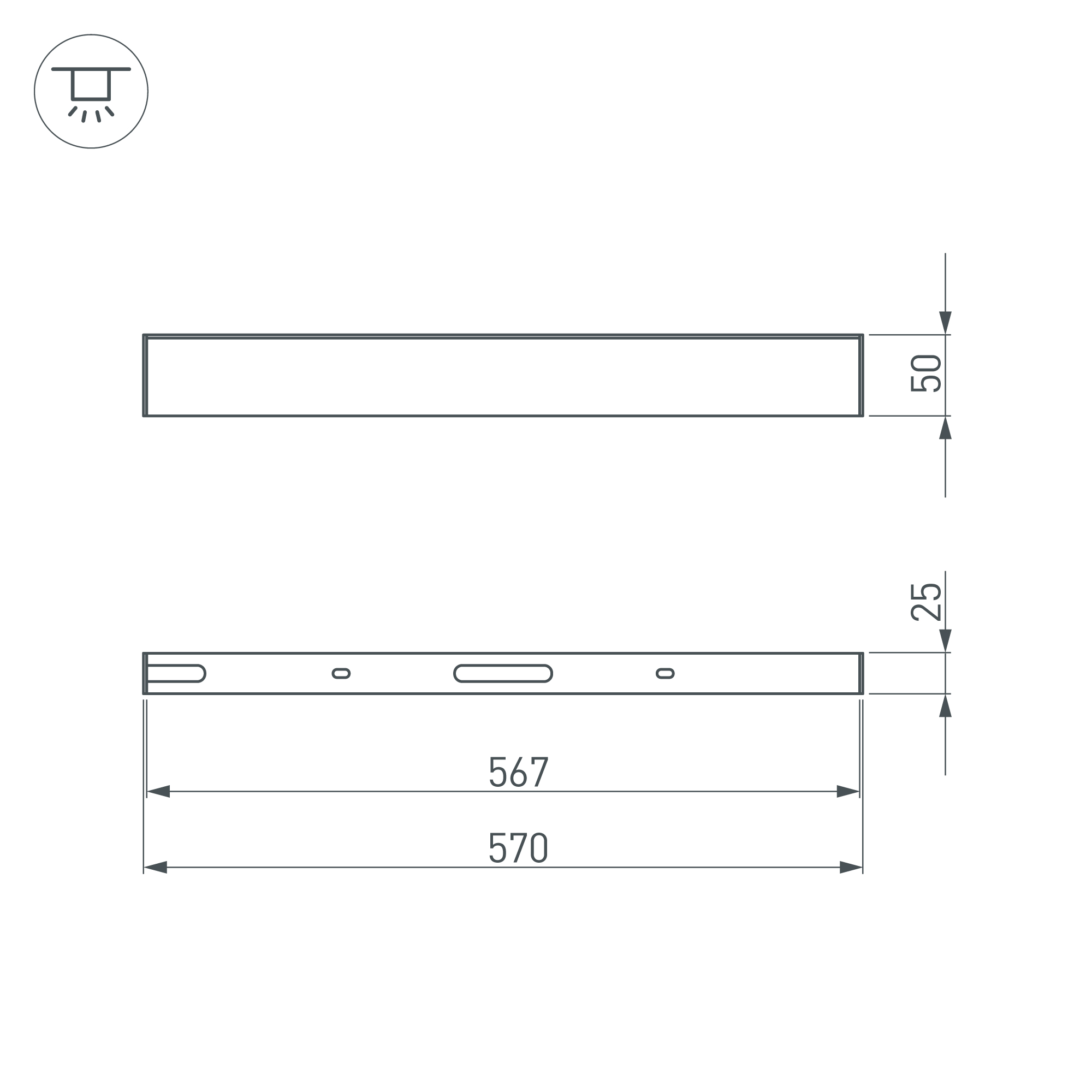 Короб для размещения блока питания для подвесного монтажа профиля. Крепится к потолку. В комплекте: короб-1шт, заглушки-2шт. Внутренние размеры: 567×22×37,5 мм. Внешние размеры: 570×25×50мм.