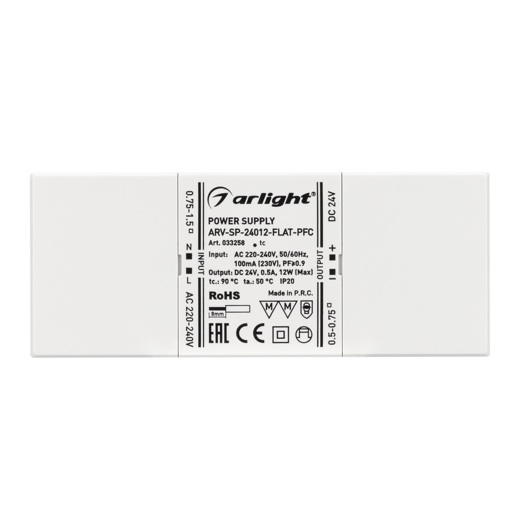 Блок питания ARV-SP-24012-FLAT-PFC (24V, 0.5A, 12W) (Arlight, IP20 Пластик, 5 лет)