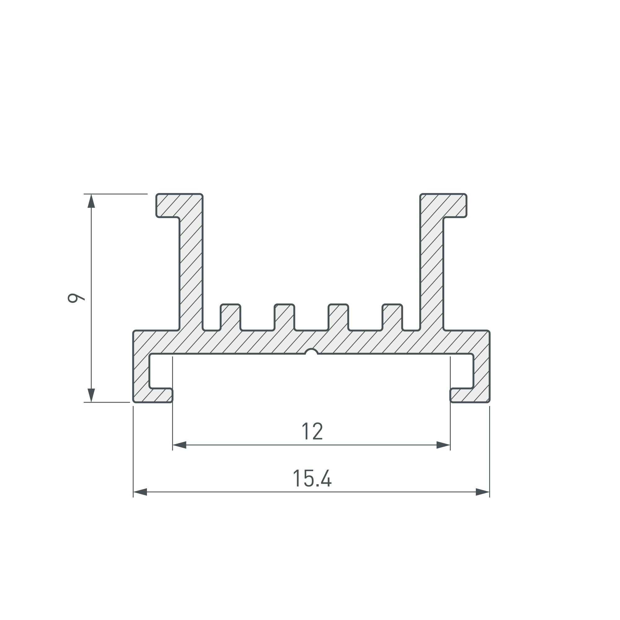 Алюминиевое основание с площадкой для установки светодиодной ленты шириной до 12 мм в профили SL-LINE-25100-DUAL-2500, SL-LINE-2522-2500, SL-LINE-3523-F-2500 с асимметричным экраном SL-LINE-W20-2500. Габаритные размеры основания составляют 2500 мм в длину, 15,4 мм в ширину и 9 мм в высоту.