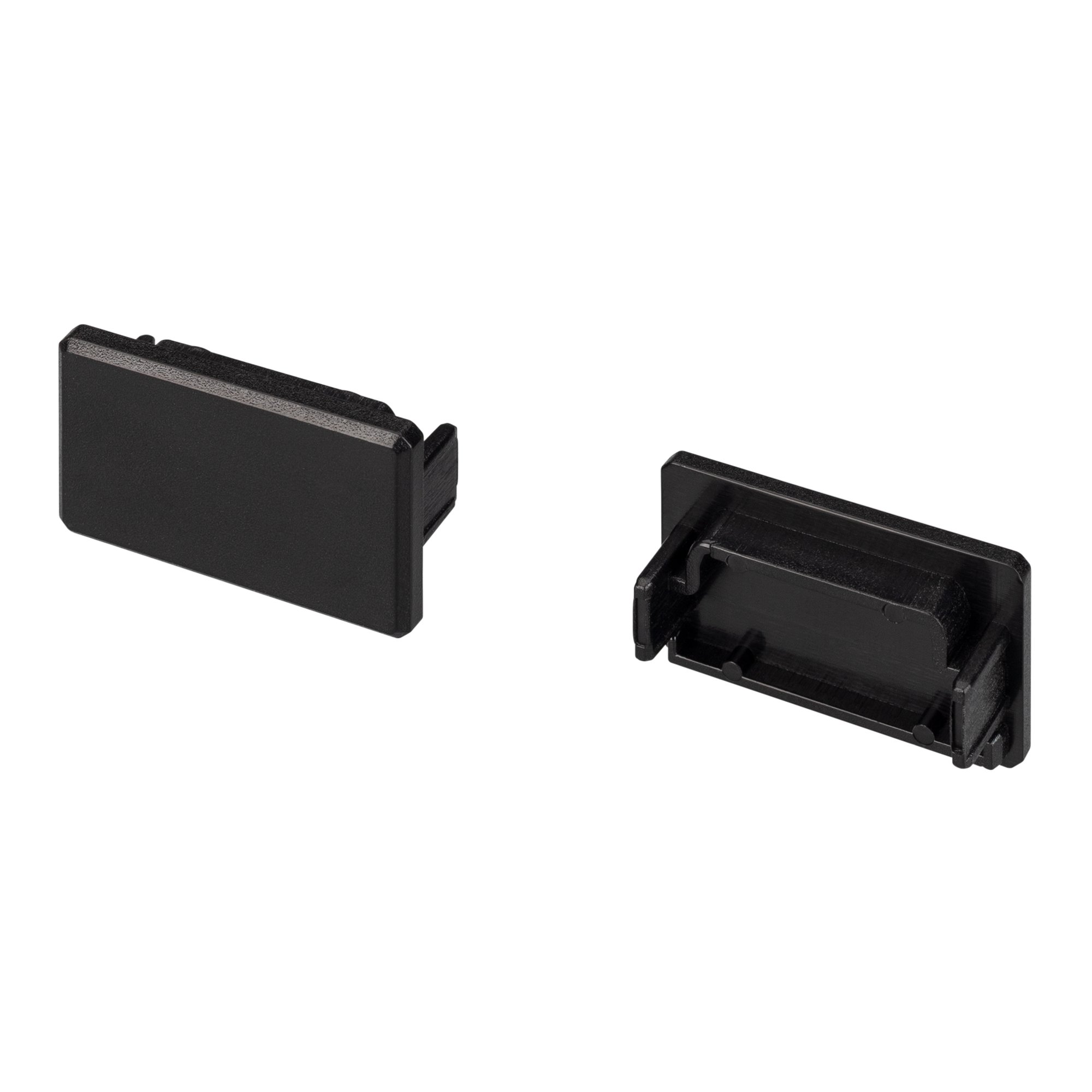 Черные глухие заглушки (2 шт.) для профиля PLS-LOCK-H16-SMT. Придают законченный вид светильнику, а также защищает светодиодную ленту от внешних факторов (грязи, пыли и прочего).
