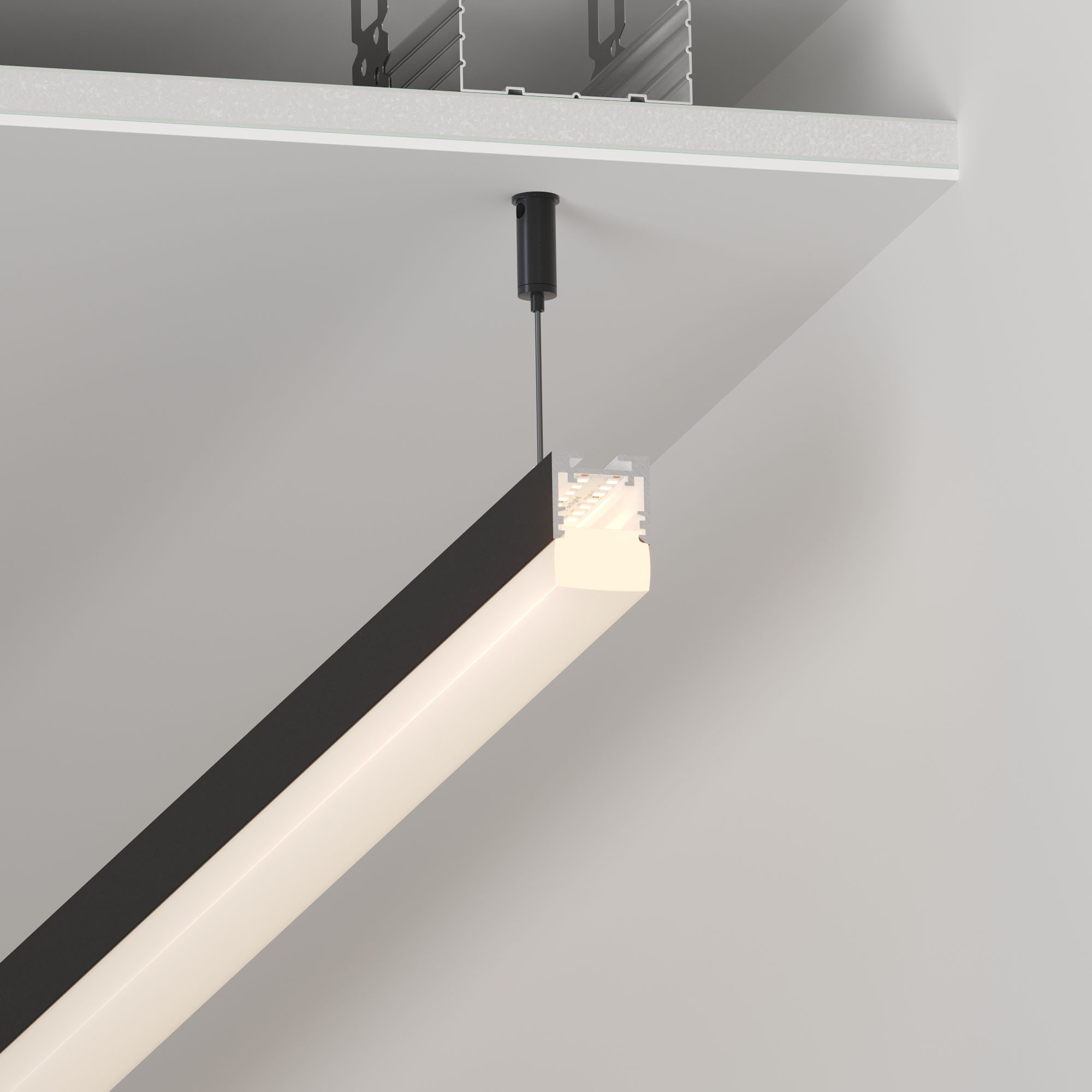 Подвесной/накладной профиль черного цвета из алюминия для основного освещения и контурной подсветки.