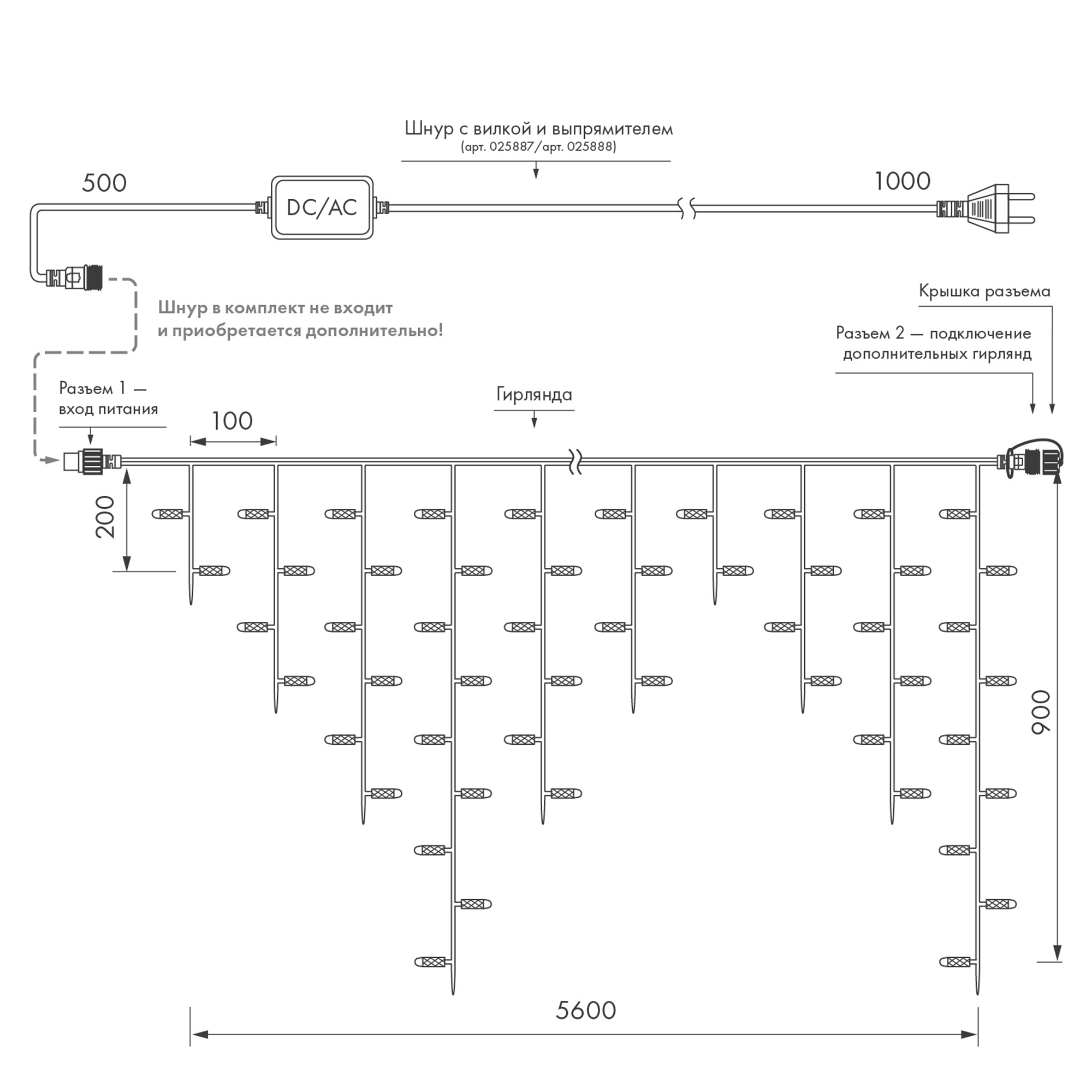 Универсальная светодиодная гирлянда "БАХРОМА" серии Pro отлично подходит для украшения и создания праздничной атмосферы как внутри помещений, так и снаружи (степень пылевлагозащиты IP65 позволяет размещать гирлянду на улице под навесом). Имея размеры 5600 x 900 мм, она может использоваться для оформления средних и больших площадей. Универсальные соединительные разъемы позволяют наращивать длину до 50 м без использования дополнительных аксессуаров. Выпуклая молочно-белая линза и эффект непрерывного свечения обеспечивают мягкое, спокойное и равномерное освещение украшаемых объектов. Теплый белый свет помогает создать необходимую атмосферу для декоративного объекта. Провод изготовлен из резины и окрашен в белый цвет. Аксессуары для подключения гирлянды к сети приобретаются отдельно.