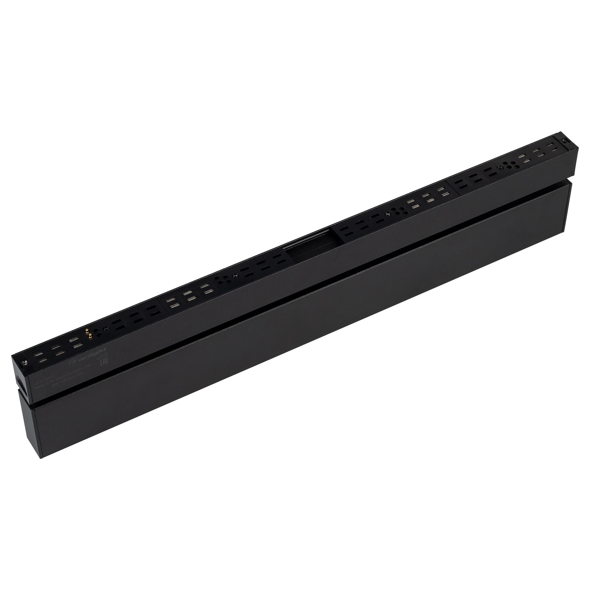 Светильник поворотный для магнитных треков шириной 25мм, 12Вт. Цвет свечения ДНЕВНОЙ 4000K, световой поток 780лм, угол 100°, CRI>90. Корпус прямоугольный, металл, цвет черный, IP20. Размеры LxWxH 404x20x46мм. Входное напряжение DC24V, мощность 12Вт. Драйвер DС24V/AC230V поставляется отдельно. Диммируется только с 026407, 027633.