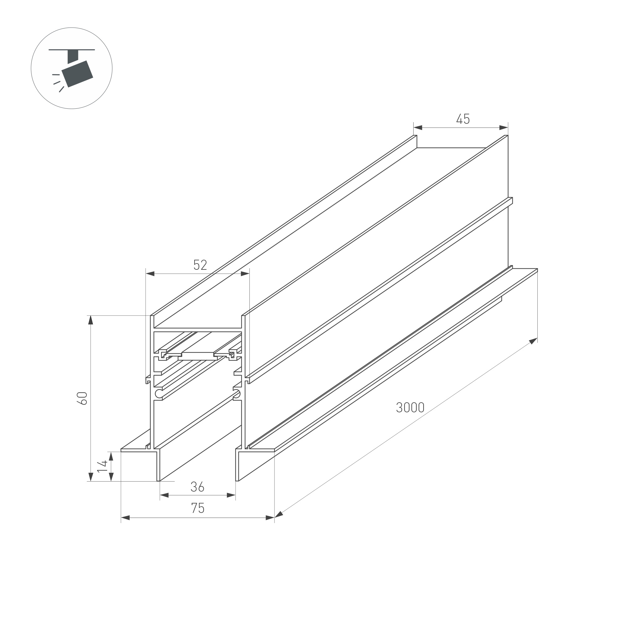 Трек встраиваемый MAG-TRACK-4560-FDW-3000 (BK) (Arlight, IP20 Металл, 5 лет)