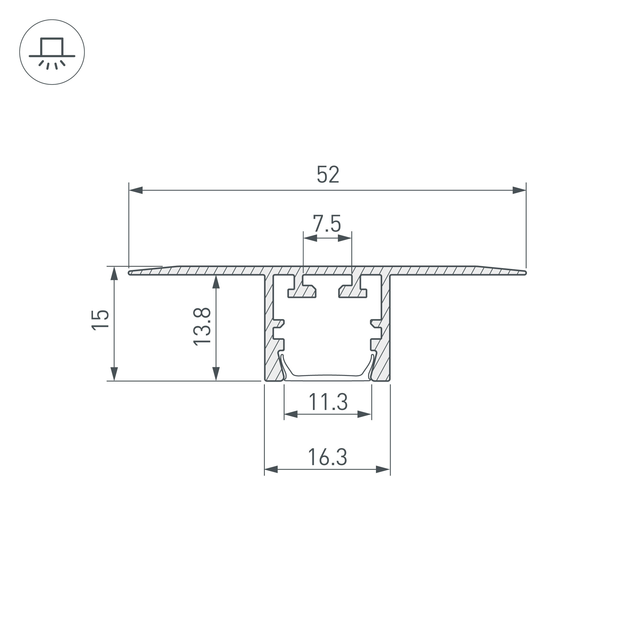 Встраиваемый профиль со скрытым фланцем из анодированного алюминия для контурной подсветки. Совместим с накладным профилем 035020. Габаритные размеры профиля составляют 2000 мм в длину, 52,2 мм в ширину и 15 мм в высоту. Площадка для установки светодиодных лент позволяет использовать ленту шириной до 14 мм и мощностью до 24 Вт/м. Это обеспечивает гибкость в выборе светодиодных лент и создает потрясающие световые решения. Экраны, заглушки и другие аксессуары не включены в комплект и приобретаются отдельно. Цена указана за 1 метр профиля. Отличное решение для создания современных световых проектов.