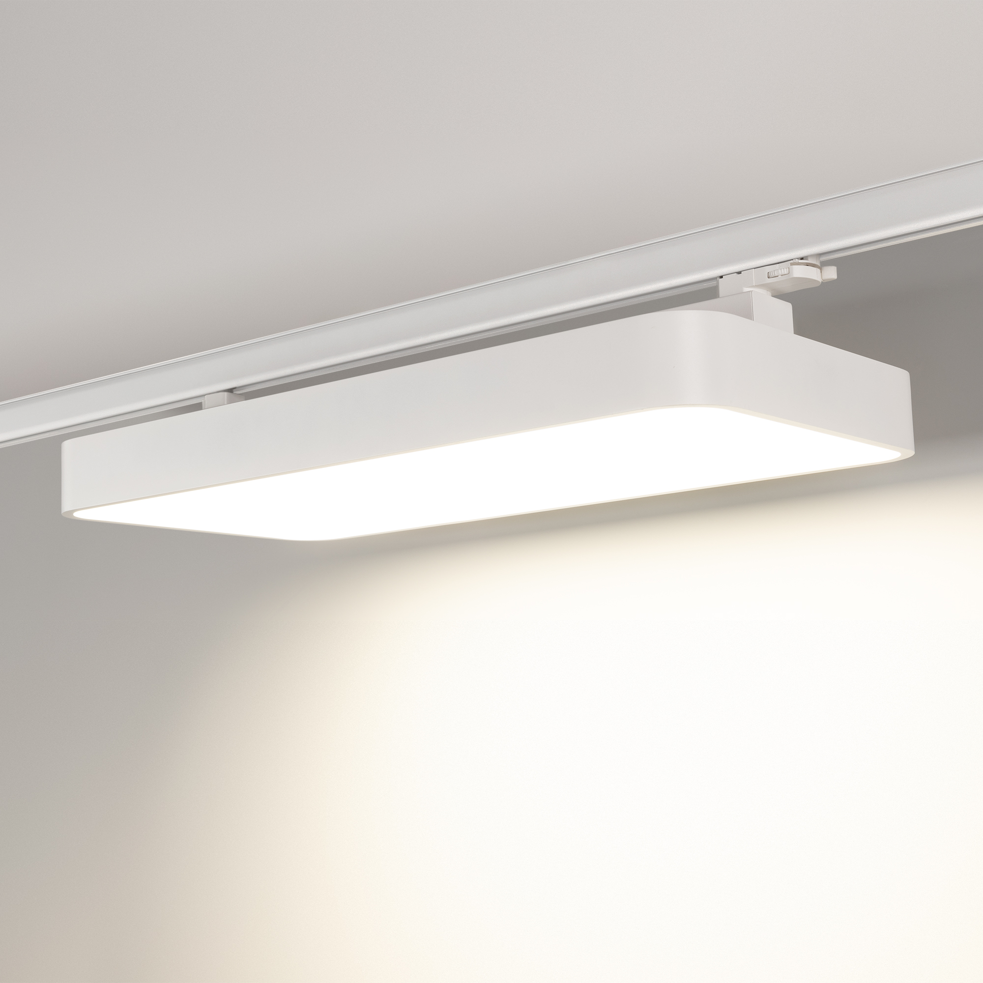 Подвесной трековый светильник LGD-AFINA-4TR-S600x300-50W Day4000 (WH, 110 deg, 230V) мощностью 50 Вт с дневным цветом свечения (4000 К), с широким углом излучения 110°, световым потоком 4200 лм и высоким индексом цветопередачи CRI>90 обеспечивает качественное освещение и высокую световую отдачу, что удовлетворяет требованиям многих проектов. Прямоугольный корпус 600*300*50 мм из алюминия окрашен в белый цвет высококачественной порошковой краской и гармонично вписывается в различные типы интерьеров. Матовый экран светильника выполнен из поликарбоната, и прекрасно рассеивает свет без видимости точек от светодиодов. Корпус светильника может легко перемещаться вдоль шинопровода, что позволяет мгновенно менять конфигурацию освещения в помещении. Светильник устанавливается на 3-фазный трек серии LGD. Имеет защиту от пыли IP20 для применения внутри помещений, где нет контакта с водой или другими жидкостями. Минимальный коэффициент пульсации (менее 1%) гарантирует зрительный комфорт без мерцания. Процесс подключения светильника к сети переменного тока 230 В быстрый и безопасный, с помощью встроенного драйвера легко совмещается с треком. Идеальное решение для создания общего освещения в офисах, торговых центрах, коммерческих зданиях и других помещениях с высокими требованиями к качеству света.