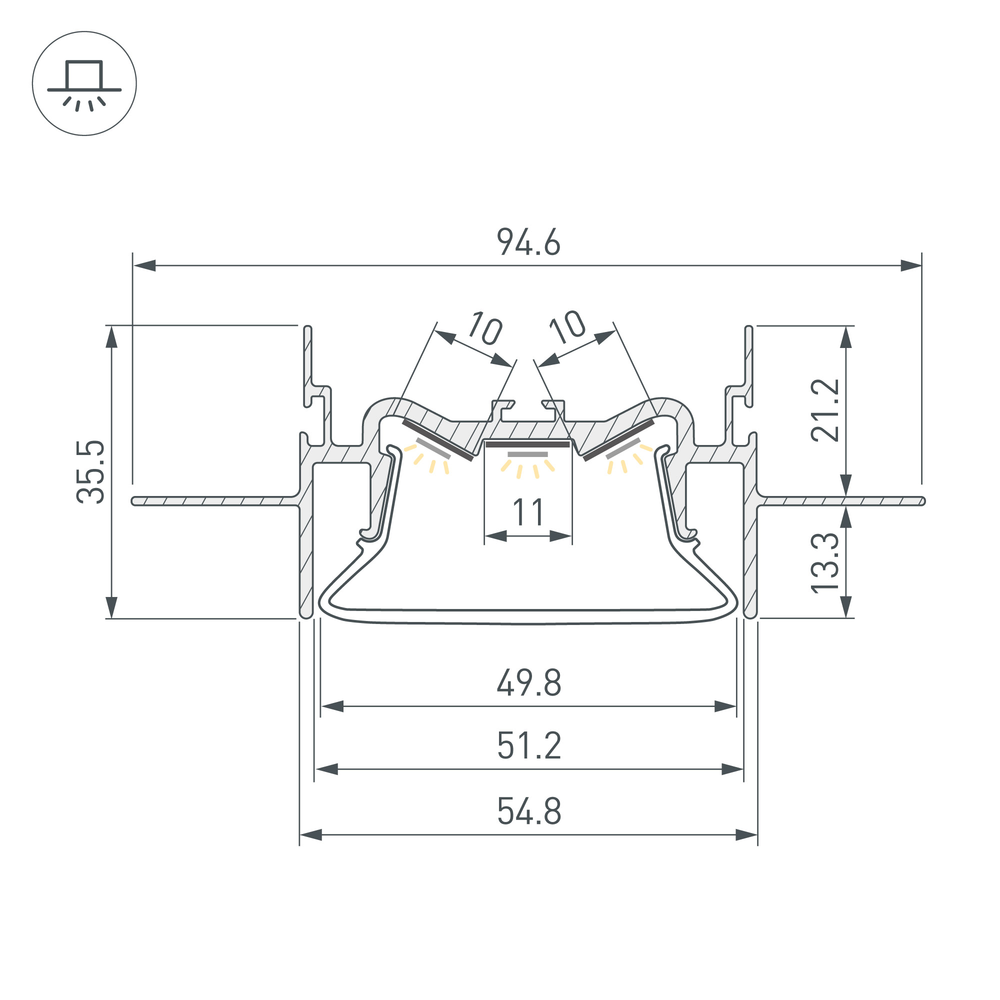 Встраиваемый алюминиевый профиль (центральная линия) для дизайнерских решений «линии света» в натяжных потолках. Решение 2-в-1: служит каркасом для крепления натяжного потолка и профилем для установки светодиодной ленты. Габаритные размеры профиля составляют 2000 мм в длину, 95 мм в ширину и 36 мм в высоту. Площадки для установки светодиодных лент позволяют использовать ленты шириной до 10 мм и мощностью до 50 Вт/м (общая мощность для трех лент). Это обеспечивает гибкость в выборе светодиодных лент и создает потрясающие световые решения. Экран, заглушки и другие аксессуары не включены в комплект и приобретаются отдельно. Цена указана за 1 метр профиля. Отличное решение для создания современных световых проектов.