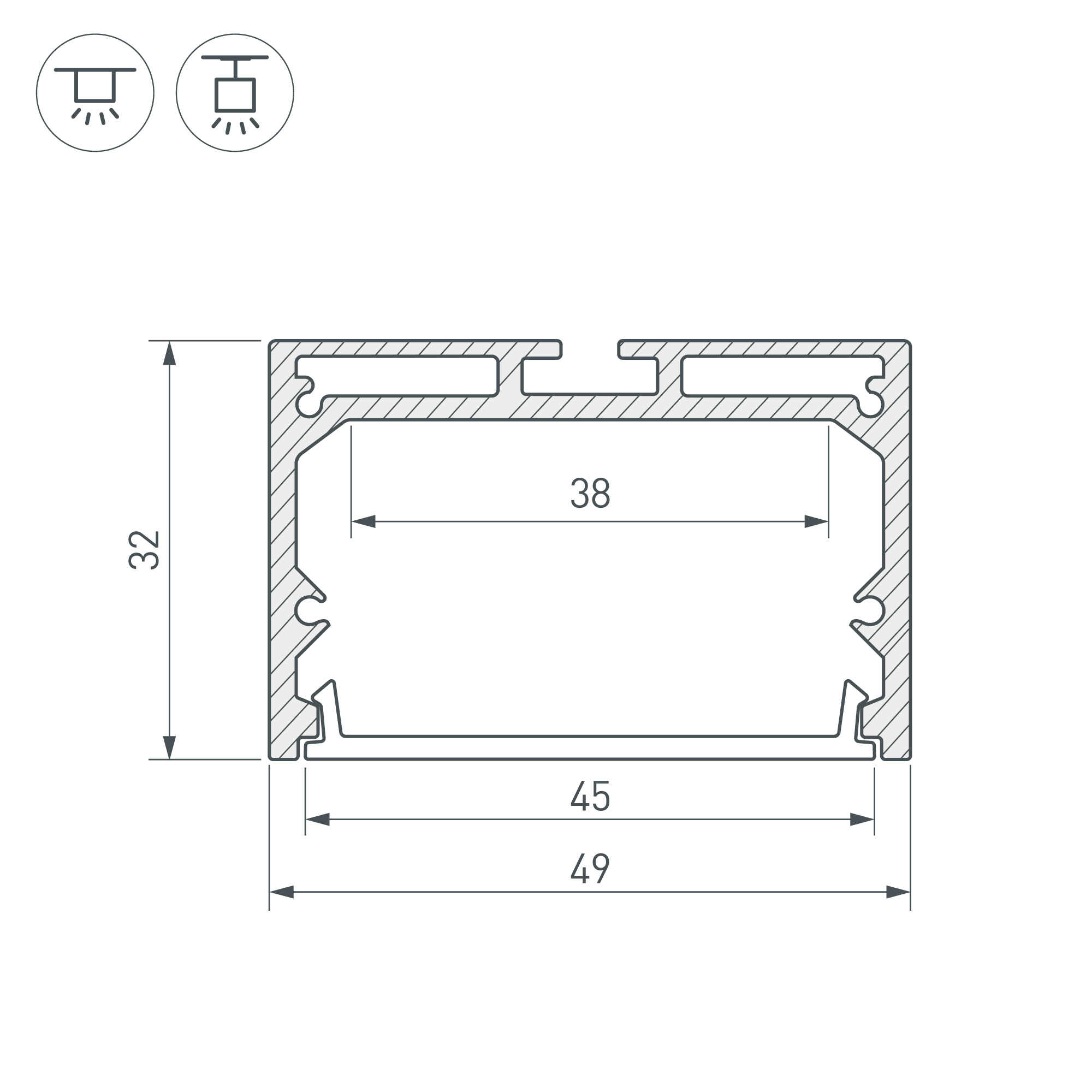 Подвесной/накладной профиль черного цвета из алюминия для основной и контурной подсветки помещений. Габаритные размеры профиля составляют 3000 мм в длину, 49 мм в ширину и 32 мм в высоту. Площадка для установки светодиодных лент позволяет использовать ленту шириной до 38 мм и мощностью до 42,5 Вт/м. Это обеспечивает гибкость в выборе светодиодных лент и создает потрясающие световые решения. Экраны, заглушки и другие аксессуары не включены в комплект и приобретаются отдельно. Цена указана за 1 метр профиля. Отличное решение для создания современных световых проектов.
