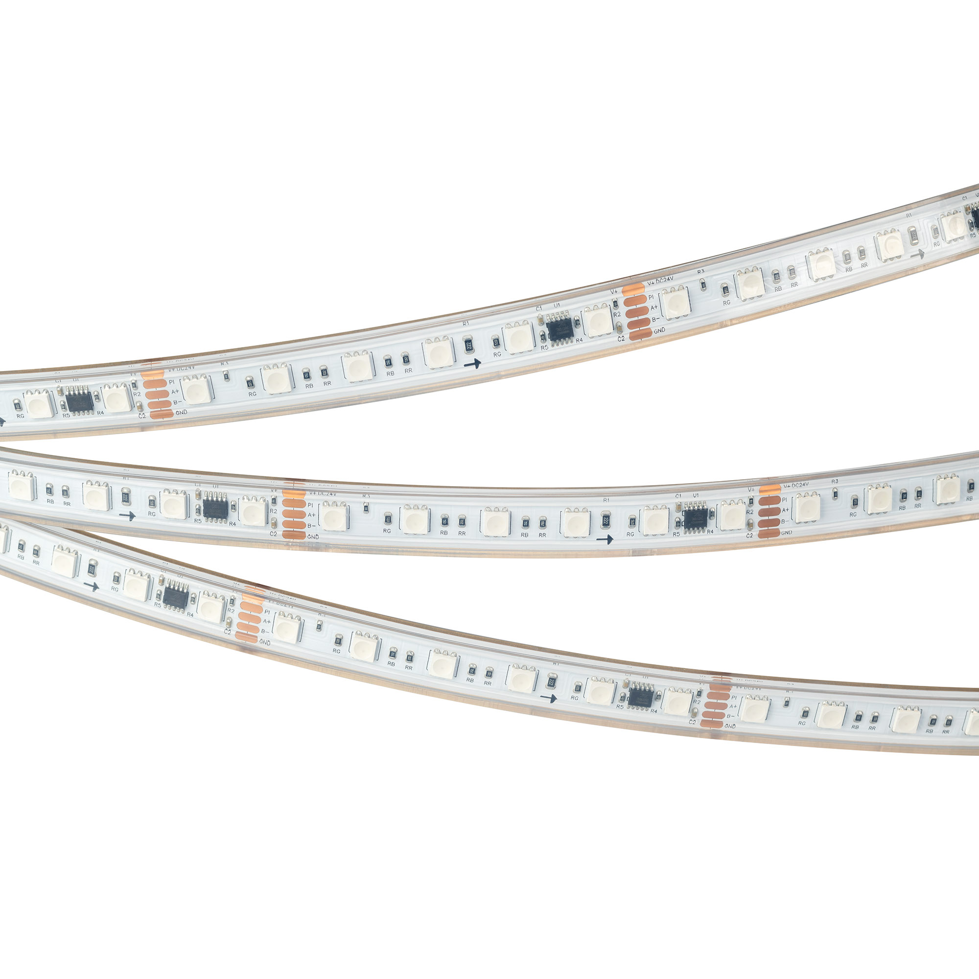 Светодиодная герметичная лента DMX серии B60 с микросхемой TM512AC, IP67 (PS - силиконовая экструзия). Светодиоды SMD 5060, 60 шт/м , 10 pixels на 1 м (50 pixels на 5 м), 1 pixel = 6 светодиодов, белая плата шириной 12 мм, скотч 3M. Цвет RGB, угол 120°. Питание 24 В, мощность 15 Вт/м (75 Вт на 5 м). Размеры 5000x15x5 мм. Мин. отрезок 100 мм, 6 светодиодов. Цена за 1 м.