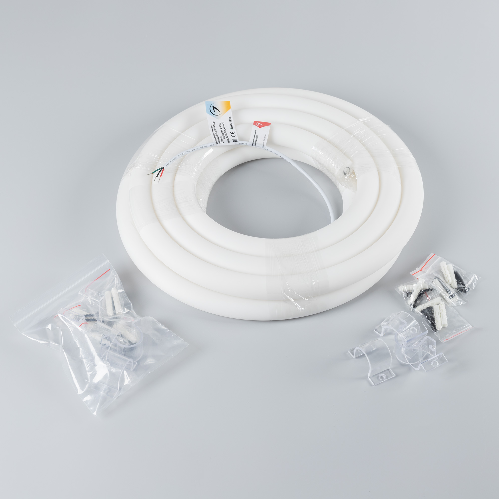 Гибкая герметичная лента MOONLIGHT имеет круглое сечение 25×25 мм и оснащена 768 светодиодами SMD2216 на метр. Возможность изменять цветовую температуру (2300К-4000К) позволяет подобрать нужный оттенок для вашего освещения, а высокий индекс цветопередачи (CRI>90) позволяет создать отличную различимость цветовых оттенков. Угол излучения ленты составляет 360°, что позволит создавать с ее помощью уникальные элементы декора. Лента потребляет 14,4 Вт/м и работает от 24 V. Класс пылевлагозащиты IP65 позволяет использовать ленту в т.ч. во влажных помещениях, и имеет минимальный радиус изгиба 120 мм. Резка ленты не предусмтрена. Габариты ленты составляют 5000×25×25 мм. Кабель питания длиной 500 мм выводится с одной стороны вдоль линии сечения ленты. Катушка содержит 5 м ленты. Цена указана за 1 м ленты. Гарантия на ленту составляет 3 года. Список совместимых аксессуаров, с помощью которых можно создавать уникальные декоративные композиции, находится в разделе "Совместимые".
