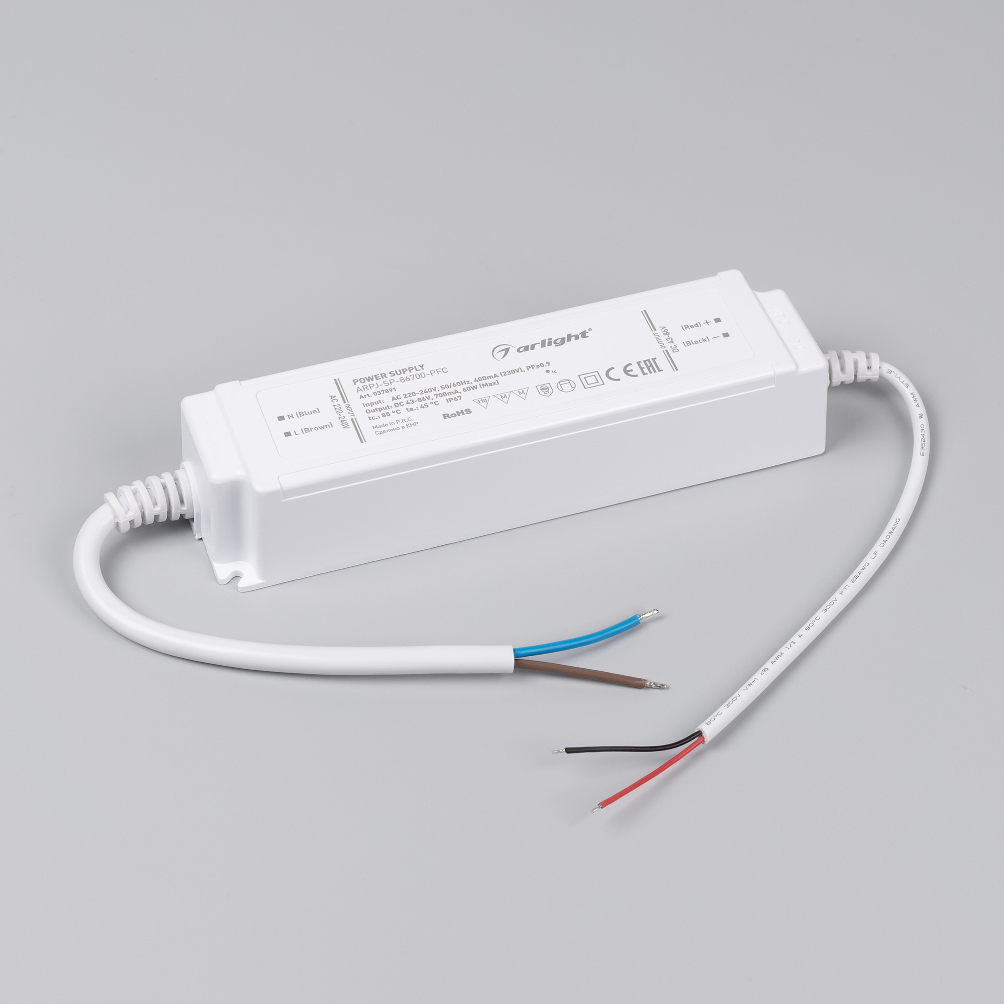 Блок питания ARPJ-SP-86700-PFC (60W, 43-86V, 0.7A) (Arlight, IP67 Пластик, 5 лет)