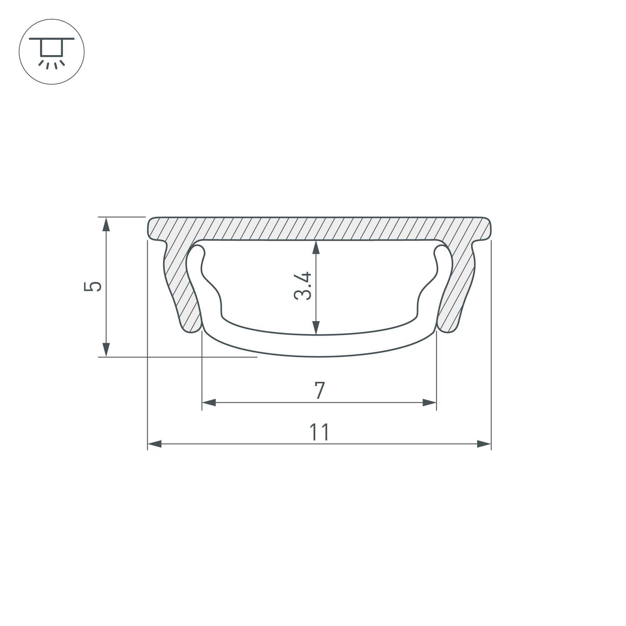 Габаритные размеры профиля составляют 2000 мм в длину, 11 мм в ширину и 5 мм в высоту. Площадка для установки светодиодных лент позволяет использовать ленту шириной до 7 мм и мощностью до 8 Вт/м. Это обеспечивает гибкость в выборе светодиодных лент и создает потрясающие световые решения.