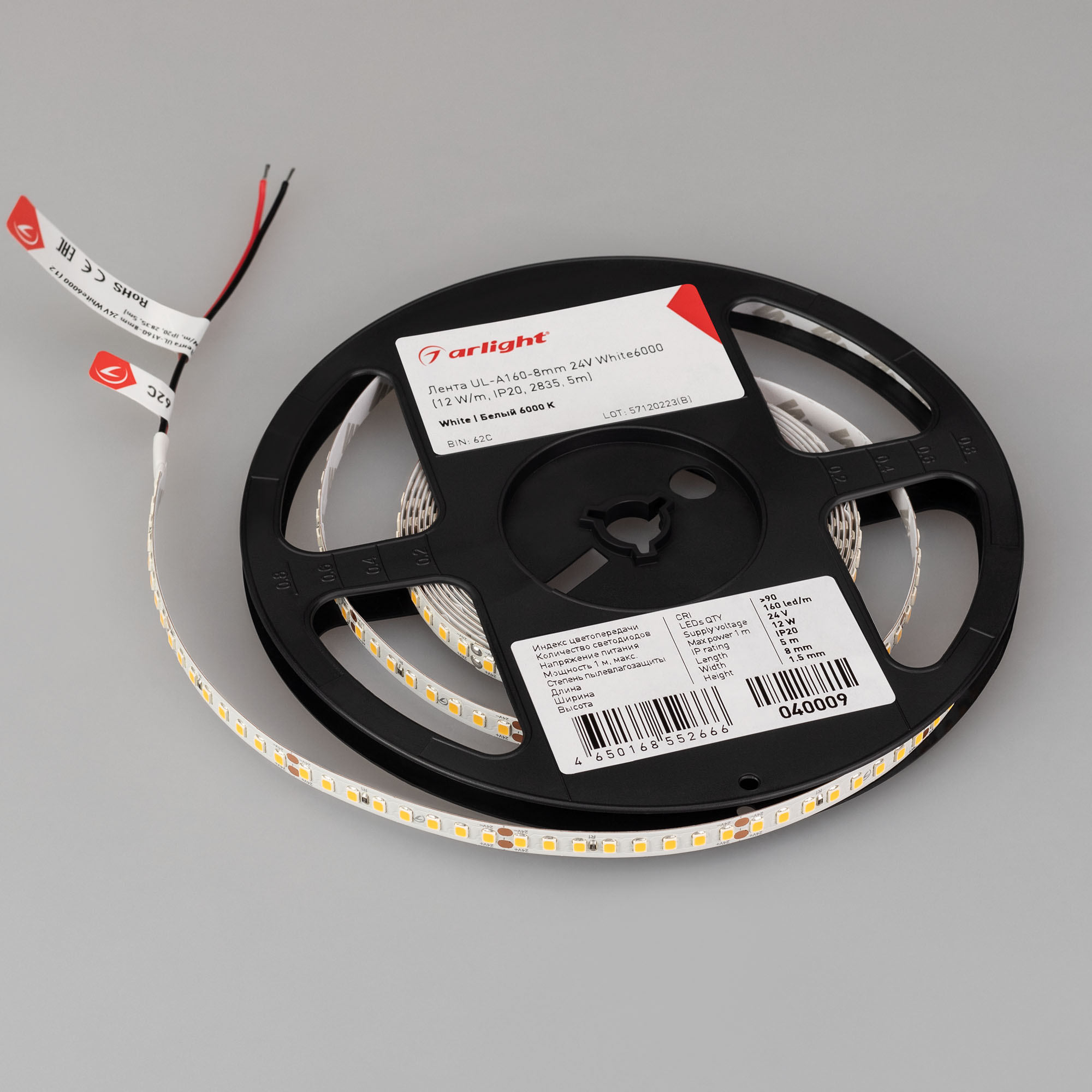 Высокоэффективная светодиодная лента UL серии A160 с гарантией 7 лет. Светодиоды SMD 2835, 160 шт/м, белого цвета свечения (6000K). Напряжение питания 24 В, мощность 12 Вт/м, ширина 8 мм. Применяется для создания декоративных ярких линий интерьеров, потолочных ниш. Высокий индекс цветопередачи CRI>90 обеспечивает точное восприятие цветов при освещении любых жилых и производственных помещений. Применяется для создания светильников на основе алюминиевого профиля. Для обеспечения теплоотвода обязательна установка на алюминиевый профиль.