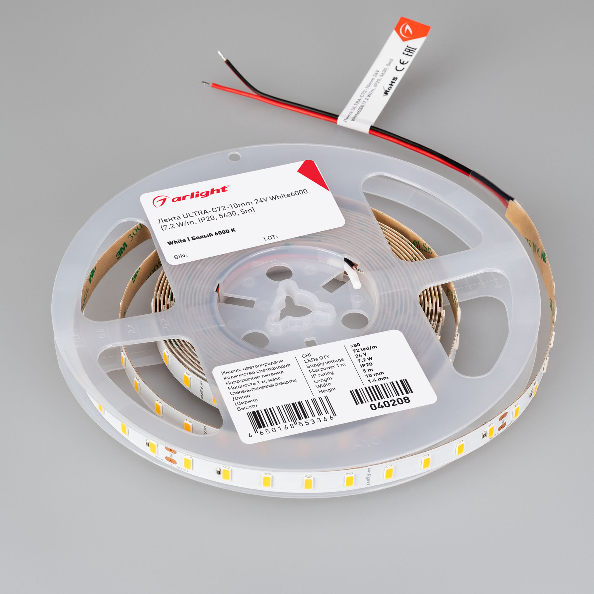 Высокоэффективная светодиодная лента ULTRA серии C72 с высокой световой эффективностью 200 лм/Вт. Напряжение питания 24 В, мощность 7.2 Вт/м, ширина 10 мм. Светодиоды SMD 5630, 72 шт/м, белого цвета свечения (6000K). Индекс цветопередачи CRI>80. Предназначена для применения в основном освещении жилых и офисных помещений, создания светильников на основе алюминиевого профиля, подсветка рекламных конструкций и витрин, декоративная подсветка потолков, ниш, колонн.