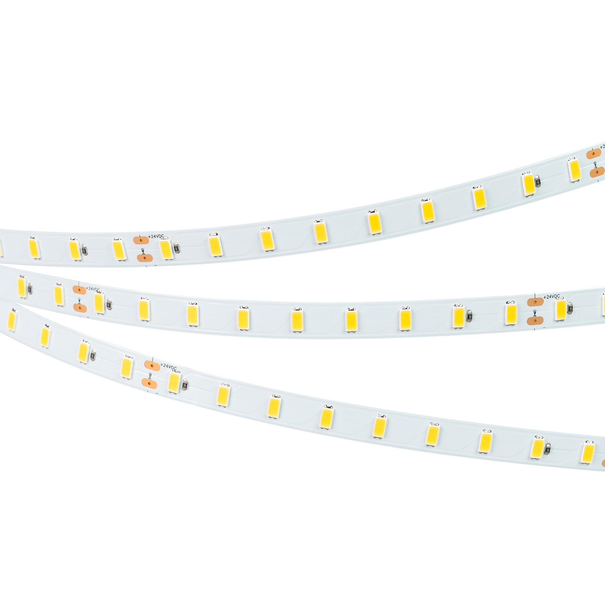 Светодиодная высокоэффективная лента ULTRA серии C72. Светодиоды SMD 5630, 72 шт/м, белая плата шириной 10 мм, скотч 3M. Цвет ТЕПЛЫЙ 3000K, высокая световая эффективность 200 лм/Вт, индекс цветопередачи CRI>80, угол 120°. Питание 24 В, мощность 7.2 Вт/м (36 Вт на 5 м). Размеры 5000x10x1.4 мм. Мин. отрезок 125 мм, 9 светодиодов. Цена за 1 м.