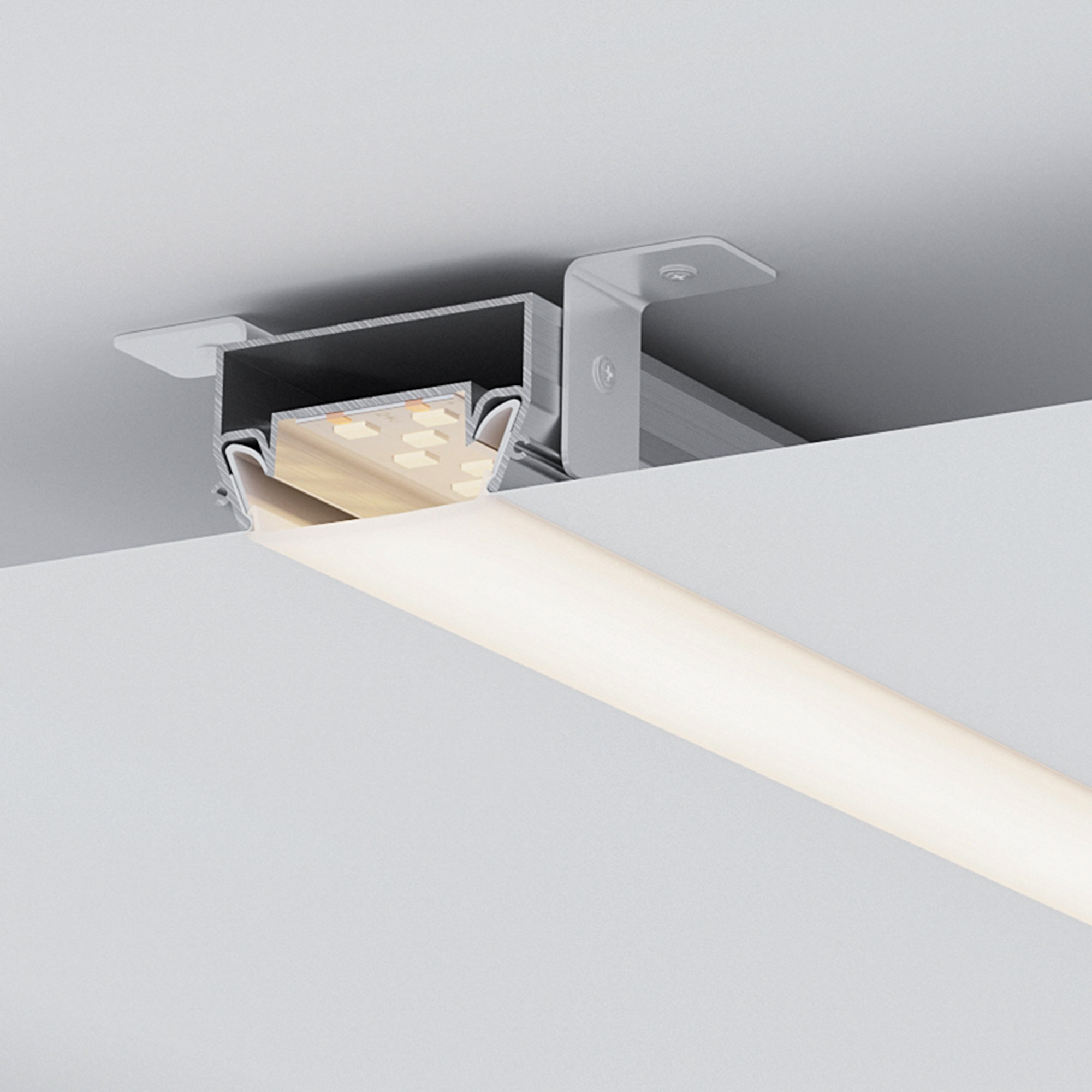 Встраиваемый алюминиевый профиль (центральная линия) для дизайнерских решений «линии света» в натяжных потолках. Решение 2-в-1: служит каркасом для крепления натяжного потолка и профилем для установки светодиодной ленты.