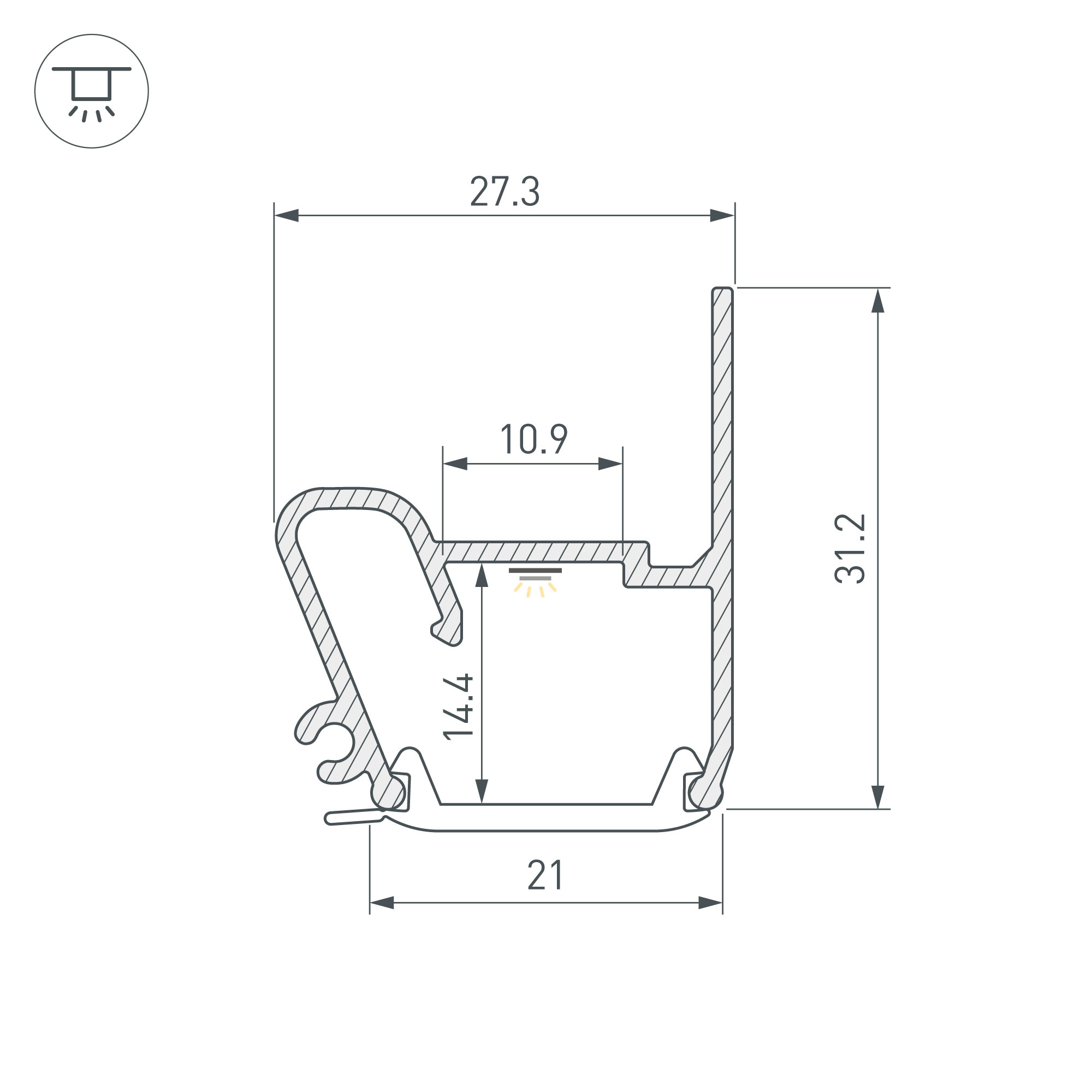 Встраиваемый алюминиевый профиль (боковая линия) для дизайнерских решений «линии света» в натяжных потолках. Решение 2-в-1: служит каркасом для крепления натяжного потолка и профилем для установки светодиодной ленты. Габаритные размеры профиля составляют 2000 мм в длину, 27,3 мм в ширину и 31,2 мм в высоту. Площадка для установки светодиодных лент позволяет использовать ленту шириной до 10,9 мм и мощностью до 32 Вт/м. Это обеспечивает гибкость в выборе светодиодных лент и создает потрясающие световые решения. Экран и другие аксессуары не включены в комплект и приобретаются отдельно. Цена указана за 1 метр профиля. Отличное решение для создания современных световых проектов.