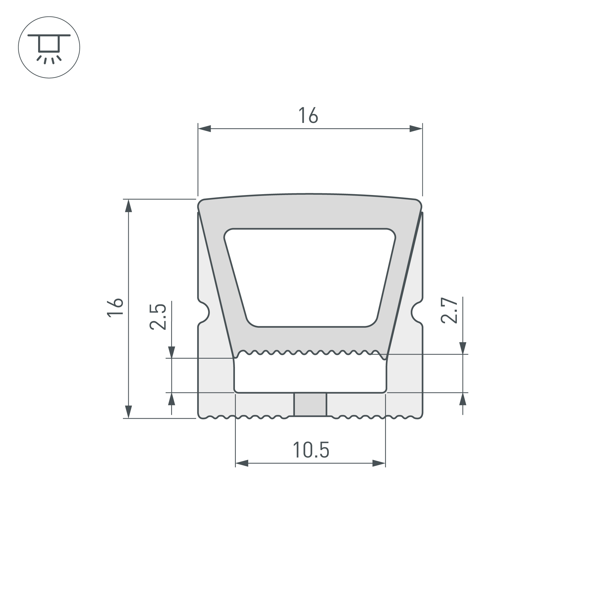 Цельнолитой силиконовый гибкий профиль белого цвета с УФ-защитой. Габаритные размеры профиля составляют 20000 мм в длину, 16 мм в ширину и 16 мм в высоту. Вертикальный изгиб TOP, минимальный радиус изгиба 60 мм. Угол излучения 115°. Для удобства установки ленты по всей длине профиля протянута нить. Площадка для установки светодиодных лент позволяет использовать ленту шириной от 10 до 10,5 мм, высотой до 2,85 мм и мощностью до 10 Вт/м. Это обеспечивает гибкость в выборе светодиодных лент и создает потрясающие световые решения. Для установки во влажных помещениях необходима герметизация при помощи двухкомпонентного эпоксидного герметика. Класс пылевлагозащиты – IP65 (при соблюдении технологии герметизации). Этот продукт представляет отличное решение для создания современных световых проектов и обеспечивает надежную и стильную основу для установки светодиодов.