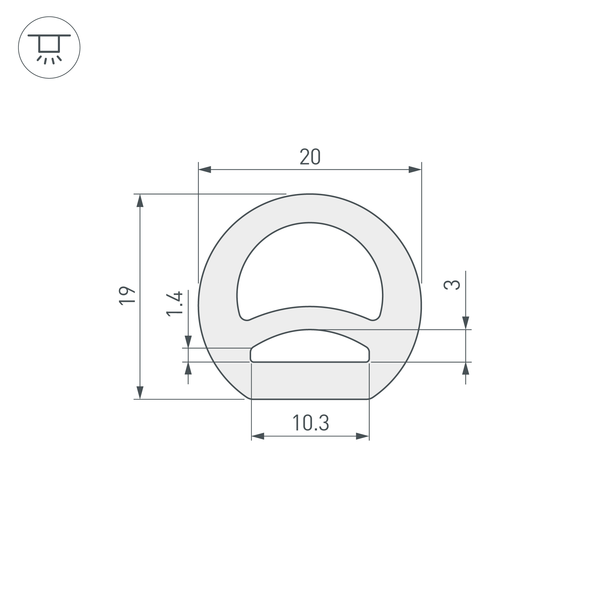 Цельнолитой силиконовый гибкий профиль белого цвета с УФ-защитой. Габаритные размеры профиля составляют 20000 мм в длину, 20 мм в ширину и 19 мм в высоту. Вертикальный изгиб TOP, минимальный радиус изгиба 60 мм. Угол излучения 110°, поперечный угол излучения 205°. Для удобства установки ленты по всей длине профиля протянута нить. Площадка для установки светодиодных лент позволяет использовать ленту шириной от 8 до 10 мм, высотой до 2,9 мм и мощностью до 10 Вт/м. Это обеспечивает гибкость в выборе светодиодных лент и создает потрясающие световые решения. Для установки во влажных помещениях необходима герметизация при помощи двухкомпонентного эпоксидного герметика. Класс пылевлагозащиты – IP65 (при соблюдении технологии герметизации). Этот продукт представляет отличное решение для создания современных световых проектов и обеспечивает надежную и стильную основу для установки светодиодов.
