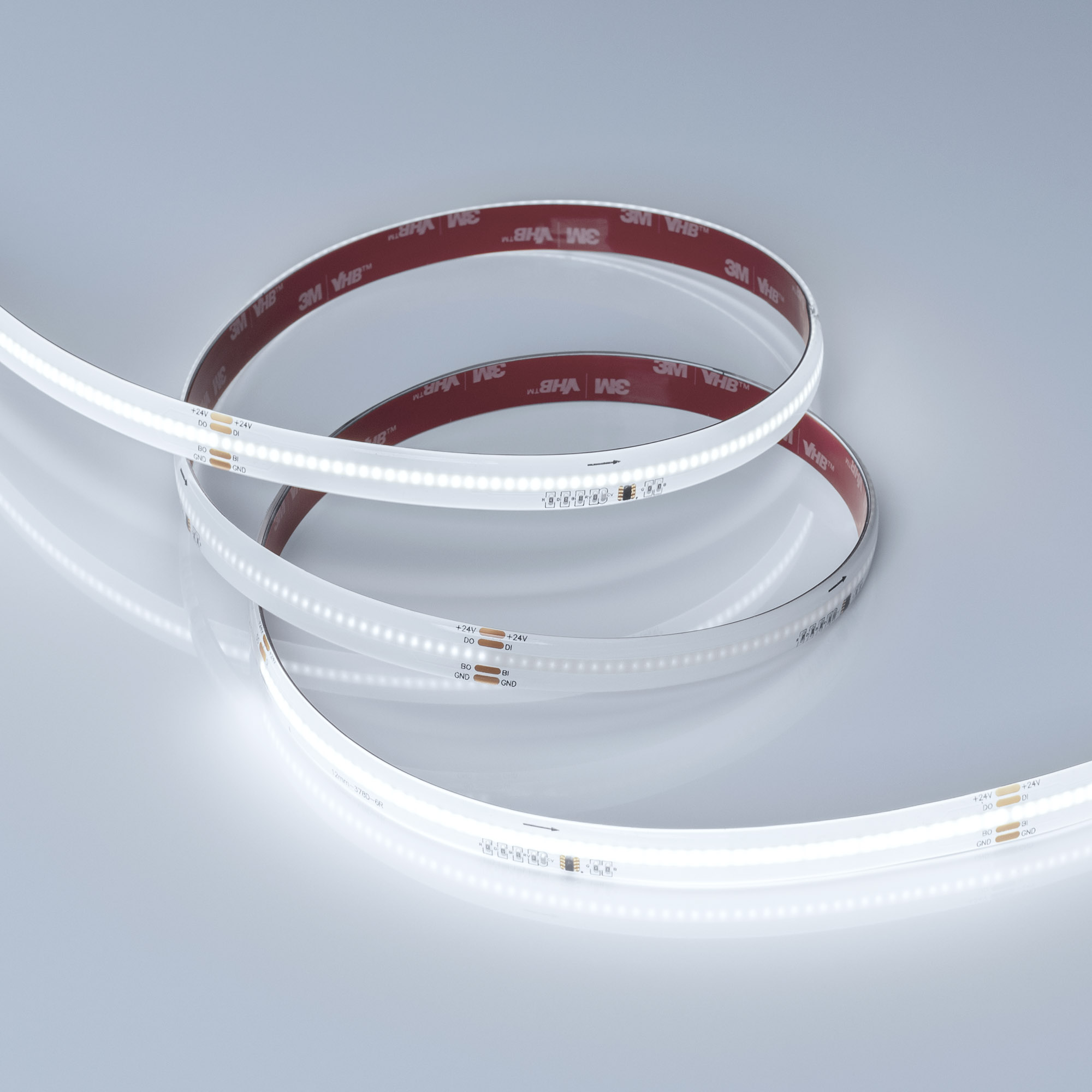Светодиодная лента герметичная SPI-COB-SE-X378-12mm 24V White6000-PX63-BPT (7 W/m, IP65, 5m) (Arlight, бегущий огонь)