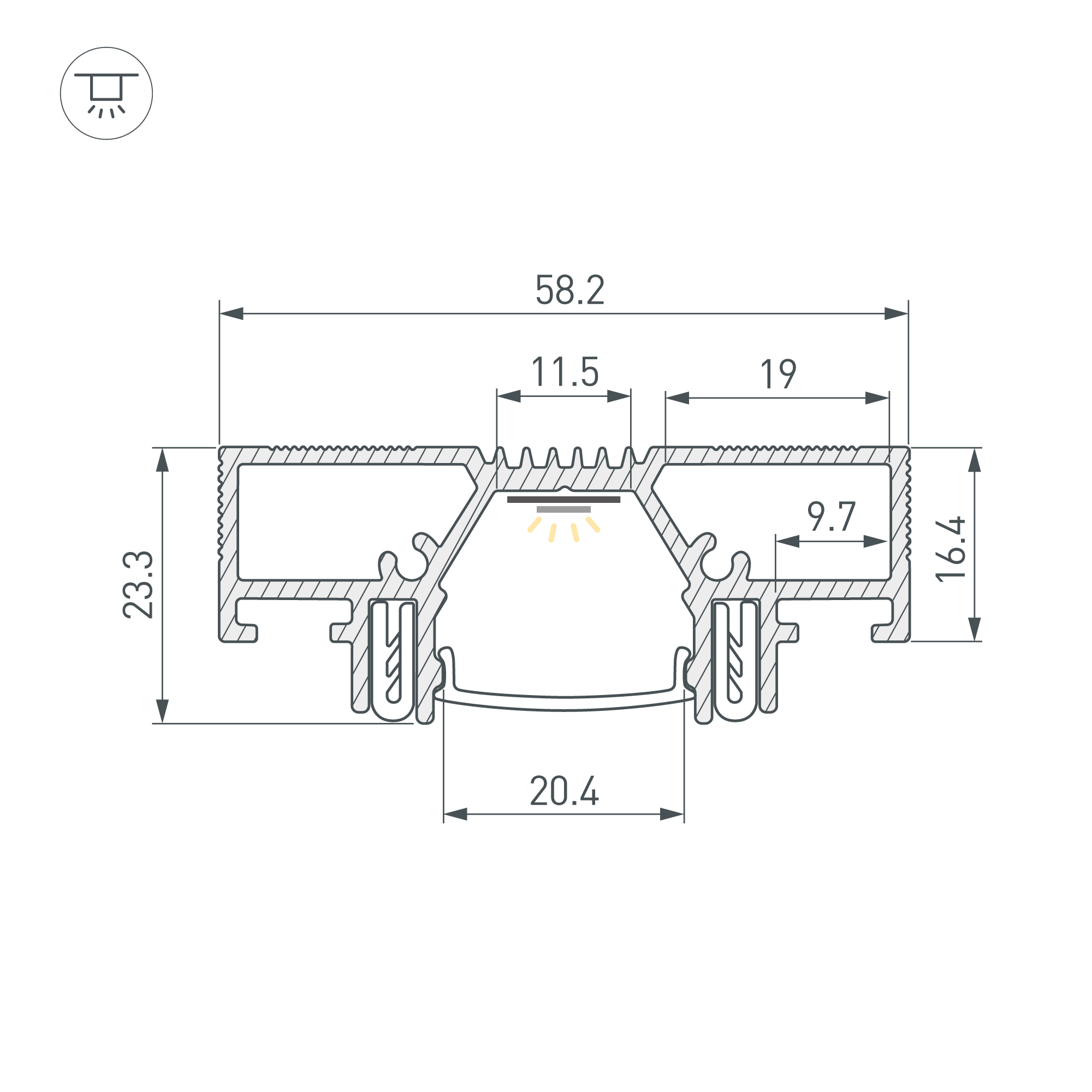 Алюминиевый профиль черного цвета - RAL9005 (порошковая окраска). Центральная линия света для дизайнерских решений в натяжных потолках. Решение 2-в-1: служит каркасом для крепления натяжного потолка и профилем для установки светодиодной ленты. Источник света находится вровень с плоскостью натяжного потолка. Демпферная система крепления полотна натяжного потолка подходит как для тканевых, так и для ПВХ полотен. Габаритные размеры профиля составляют 2000 мм в длину, 58,2 мм в ширину и 23,35 мм в высоту. Основная площадка для установки светодиодных лент шириной до 11,5 мм и две дополнительные площадки шириной по 10мм. Это обеспечивает гибкость в выборе светодиодных лент и создает потрясающие световые решения. Экран и другие аксессуары не включены в комплект и приобретаются отдельно. Цена указана за 1 метр профиля. Отличное решение для создания современных световых проектов.