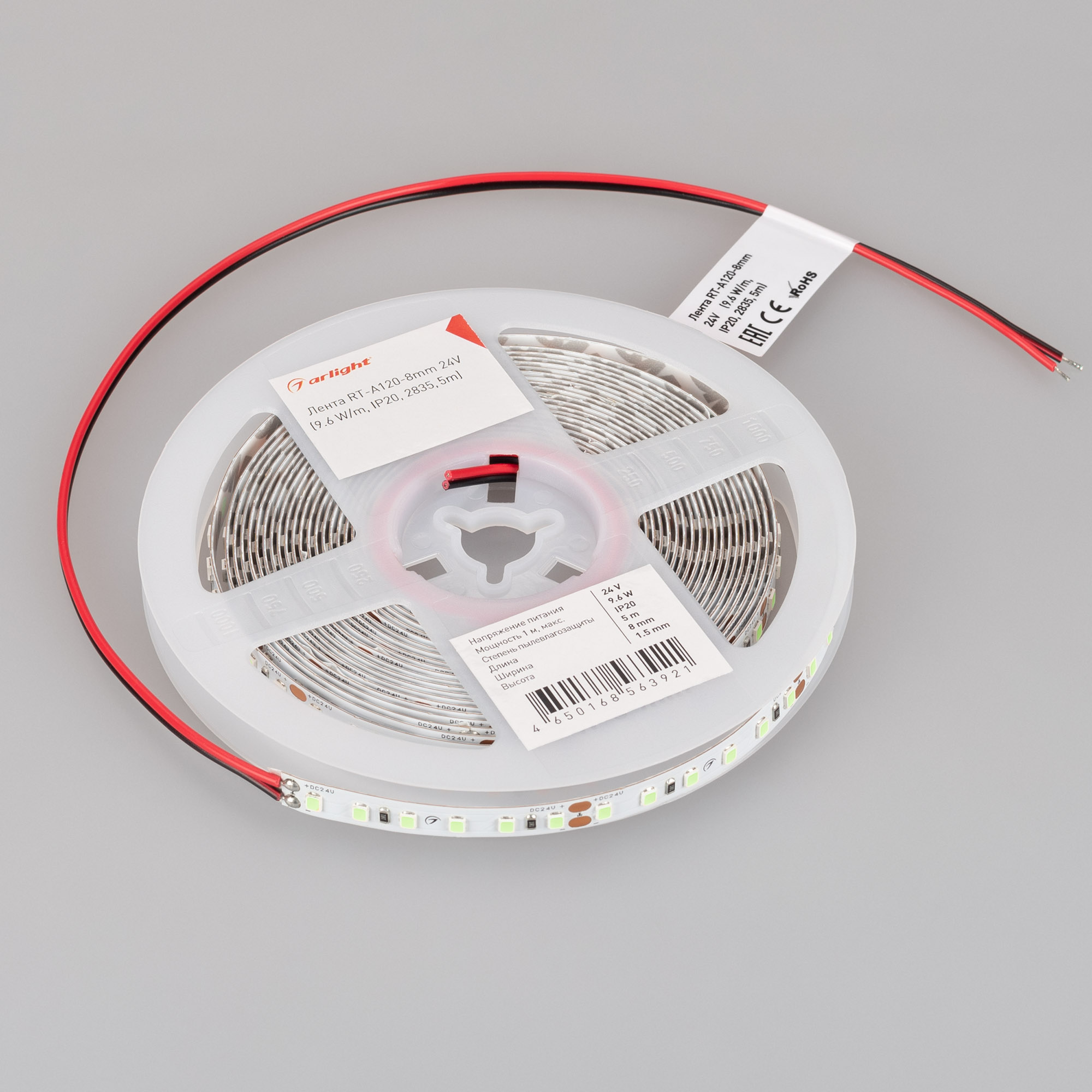Светодиодная лента RT-A120-8mm 24V Tiffany (9.6 W/m, IP20, 2835, 5m) (Arlight, -)
