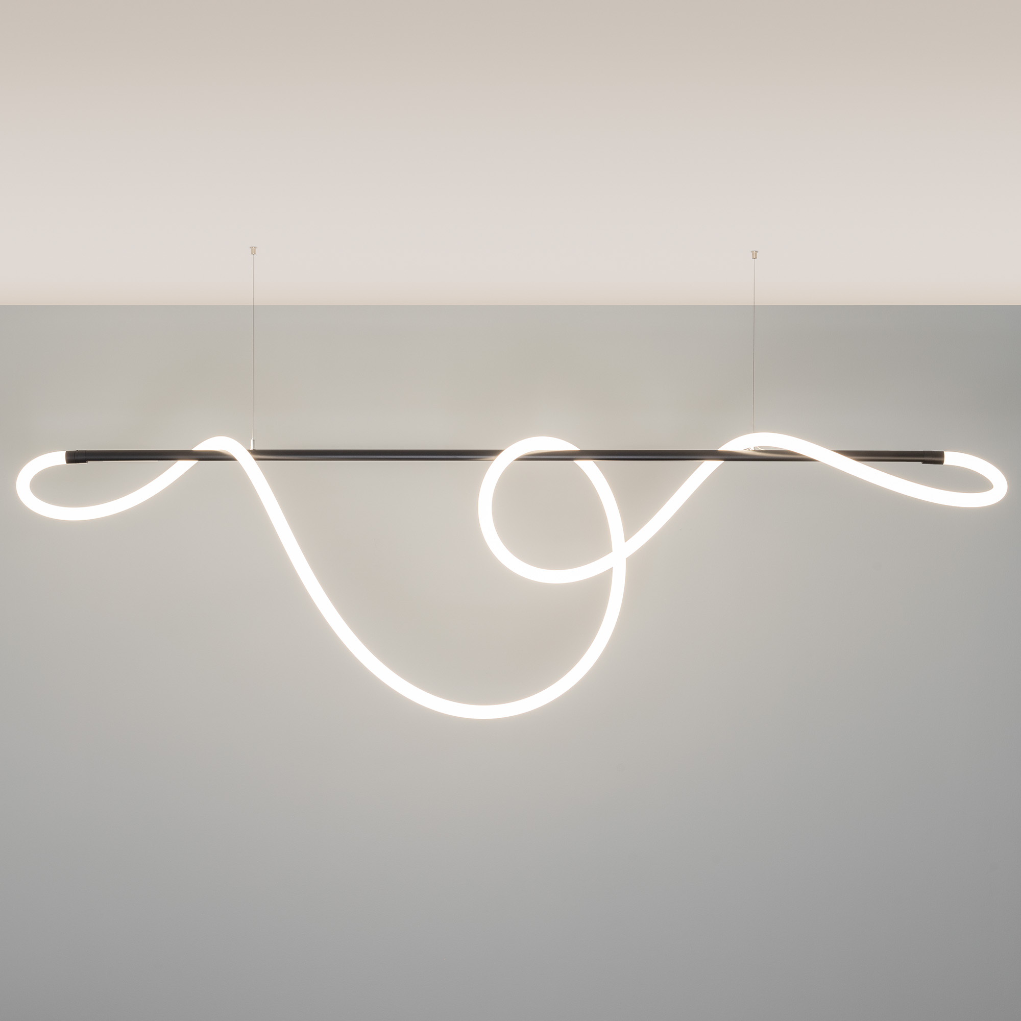 Подвесной светильник. Мощность 70 Вт, св. поток 4700 лм, 67 лм/Вт, дневной 4000 K, CRI>90, угол 360°, напряжение питания 230 В (в комплекте блок питания 230В/48В). Матовый белый фигурный корпус из силикона. Размер: диаметр 30 мм, длина 5000 мм. Монтаж на магнитный трек FLEX. Комплектующие: 021181(1) -1шт, 034063 - 2шт, 034062 - 1шт, 035391 - 1шт, 035385 - 1шт, 035388 - 1шт, коробка 035707, 027836(2) - 1шт..