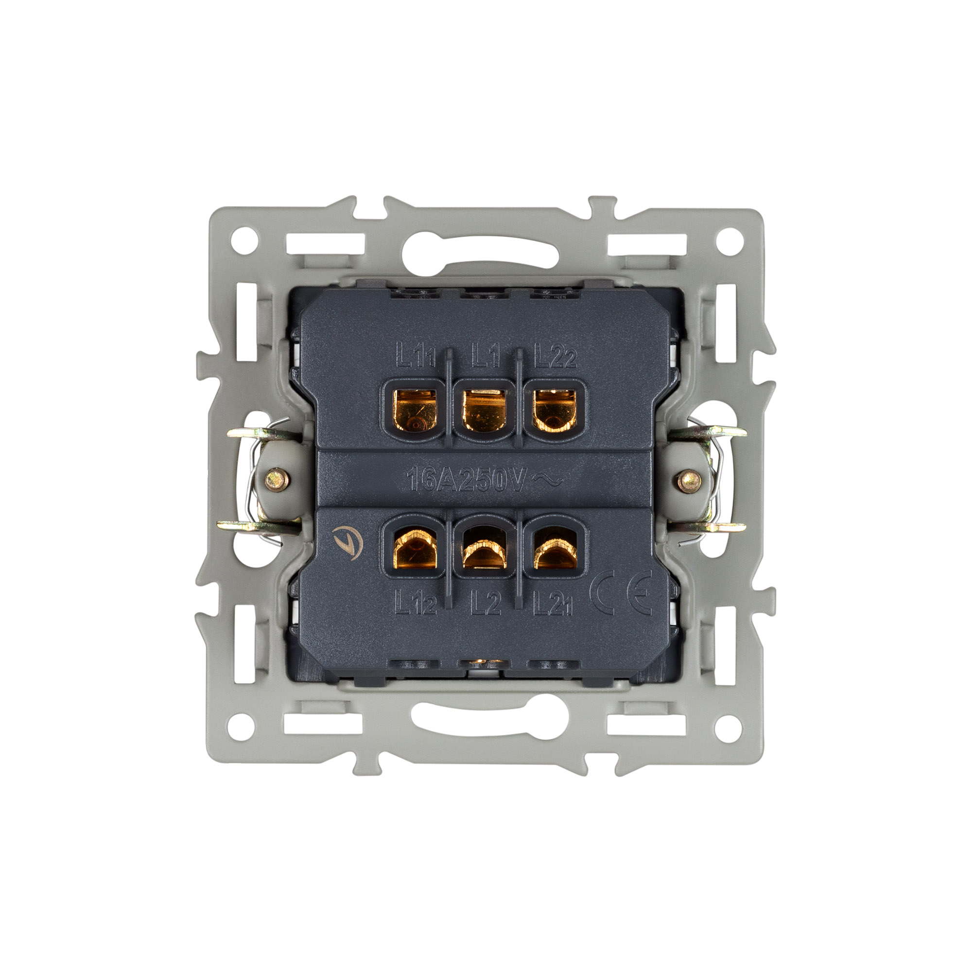 Механизм выключателя клавишный на 1 пост 1 клавиша (перекрёстный), с суппортом из алюминия. Цвет - серый. Степень пылевлагозащиты - IP20.