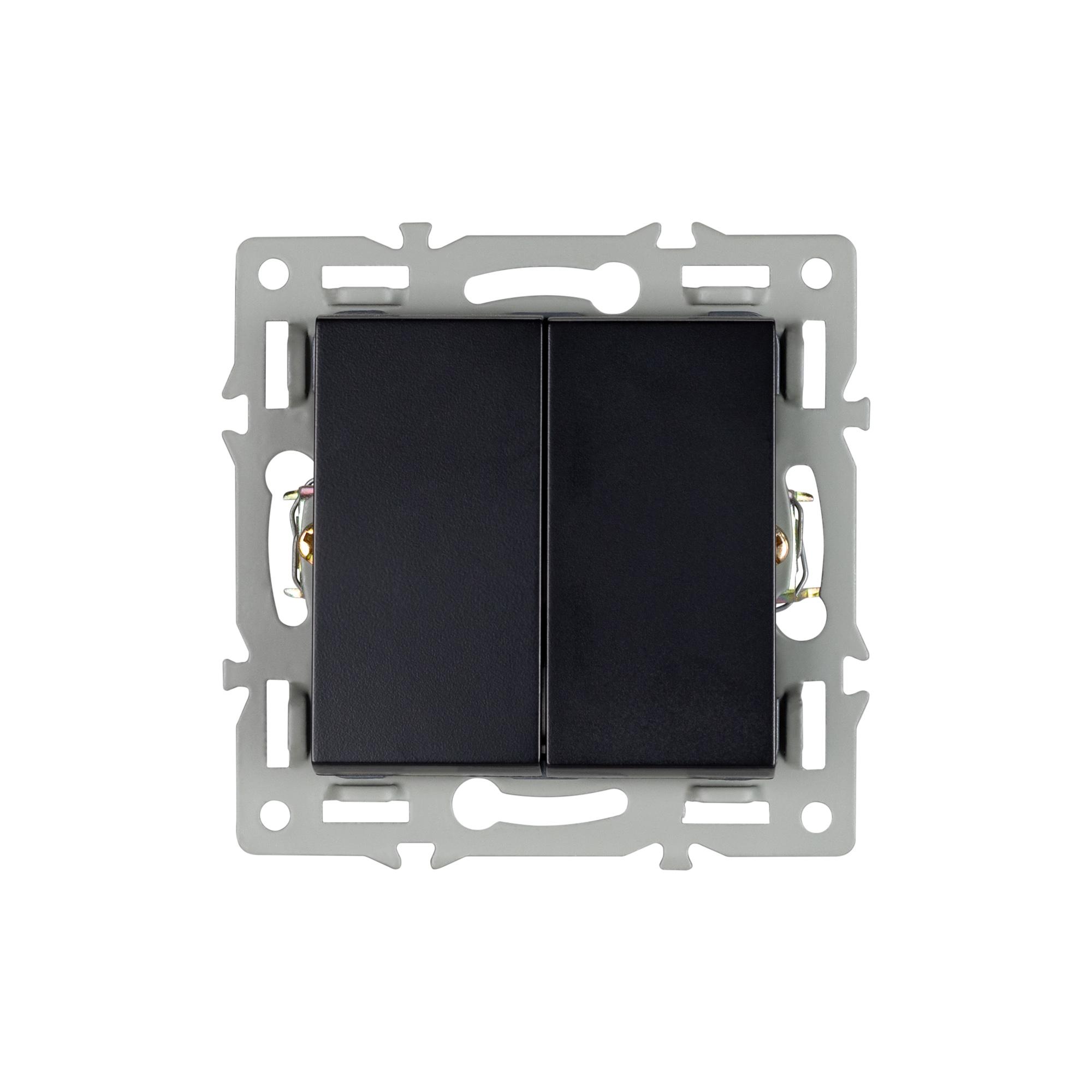 Механизм выключателя клавишный на 1 пост 2 клавиши (непроходной), с суппортом из алюминия. Цвет - черный. Степень пылевлагозащиты - IP20. Устанавливается в стандартный круглый подрозетник 220V (Арт.044895). Рабочее напряжение 110-250V. Макс. ток нагрузки 16А. Габаритные размеры: длина 74 мм, ширина 74 мм, высота 35 мм. Гарантийный срок 10 лет.