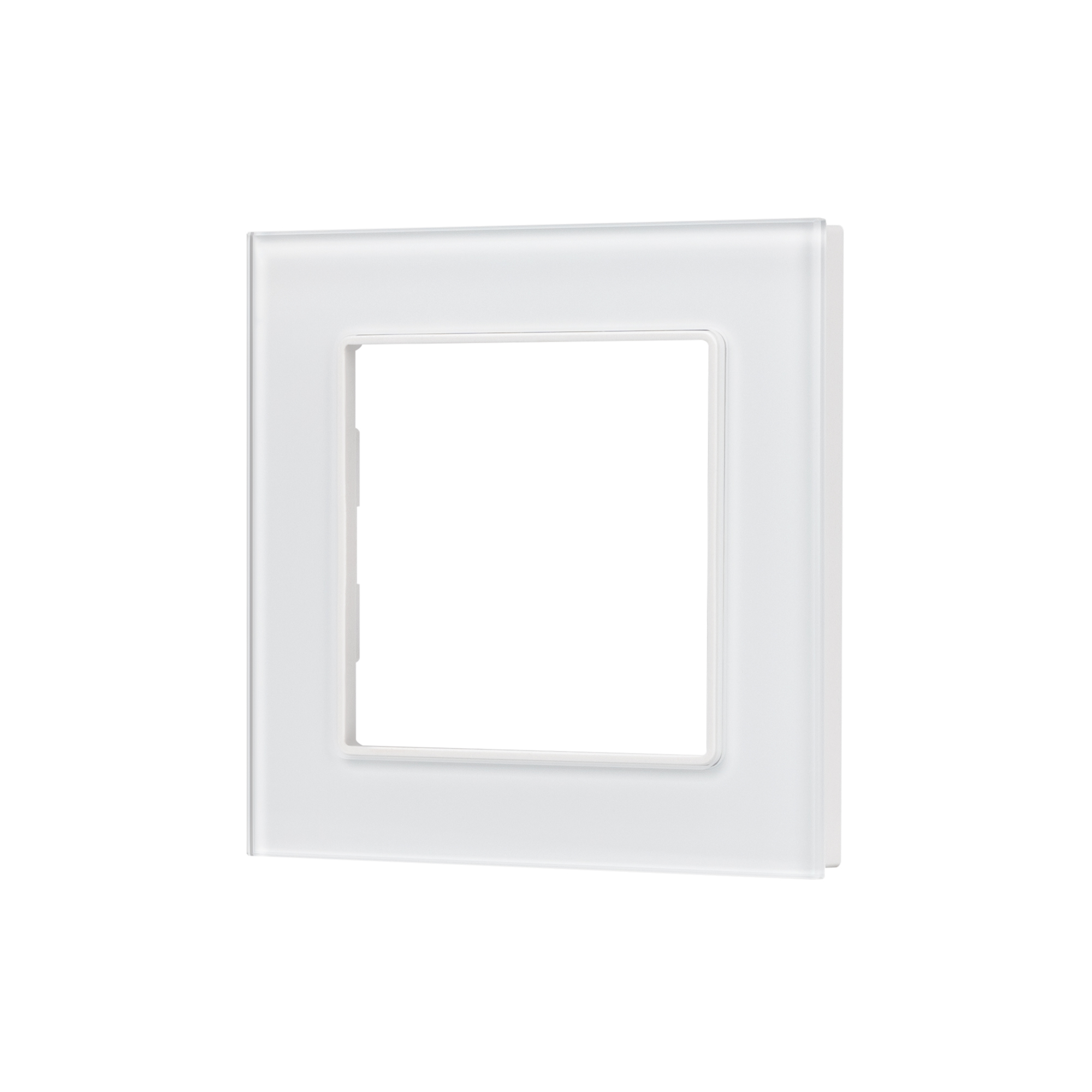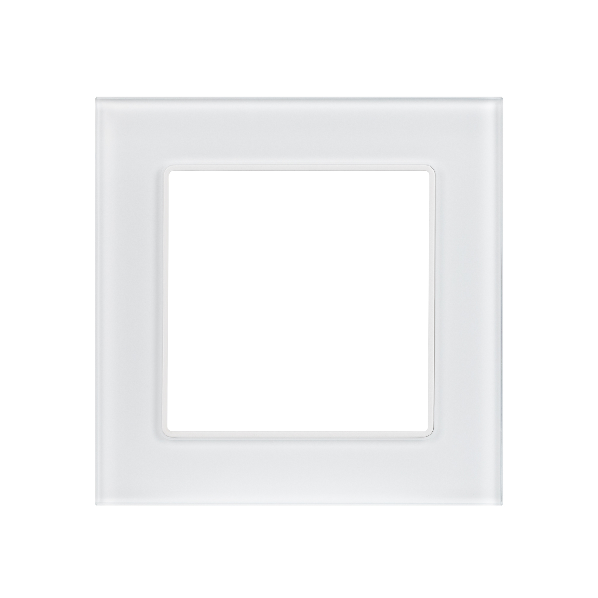 Рамка стеклянная на 1 пост, под встраиваемый механизм (квадрат). Цвет - белый. Ориентации монтажа - горизонтальная.