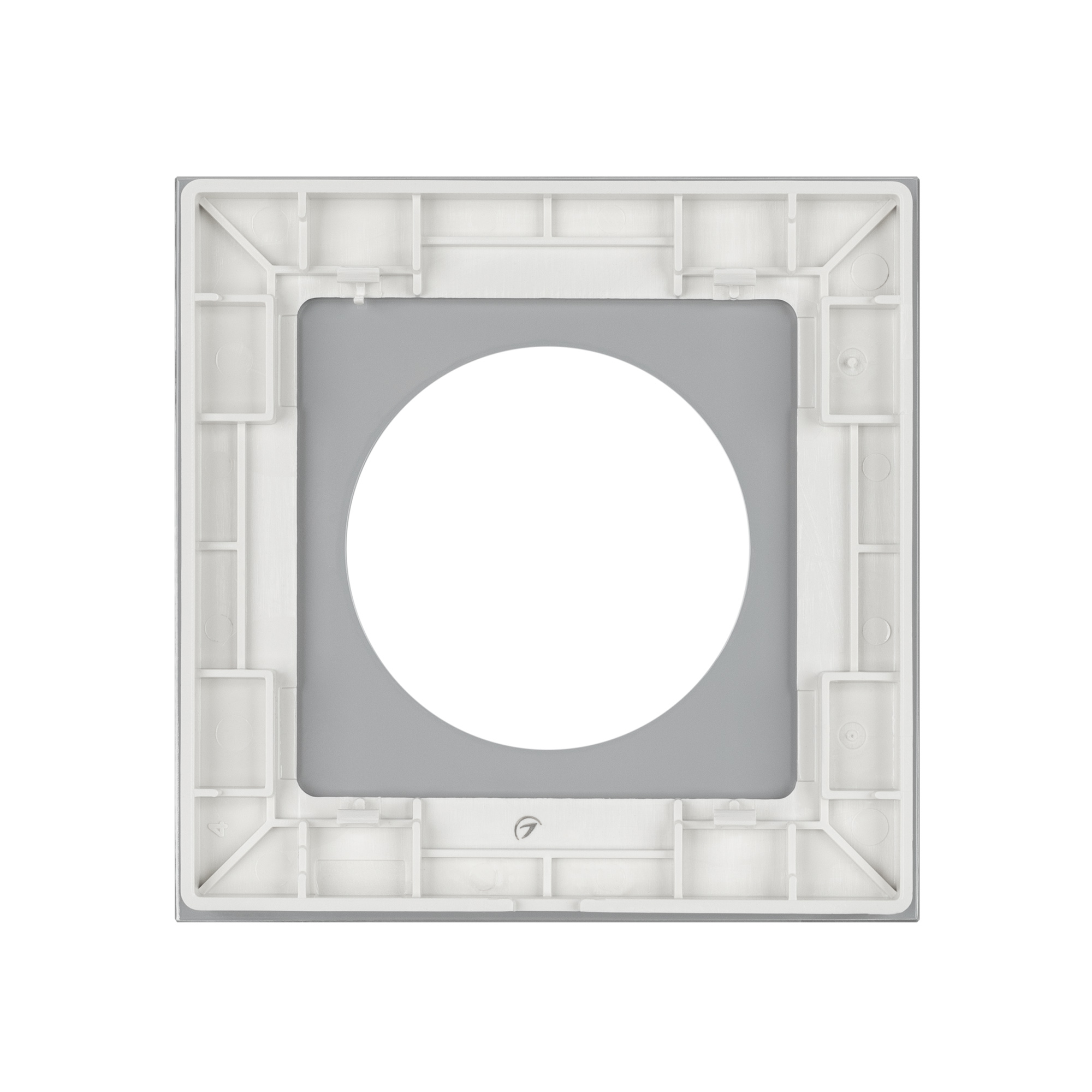 Рамка стеклянная на 1 пост, под встраиваемый механизм. Вырез под функциональную часть круг*. Цвет - белый. Ориентации монтажа - горизонтальная. Габаритные размеры: длина 82 мм, ширина 82 мм, высота 10 мм. Гарантийный срок 12 мес. Рамка совместима только с механизмами арт. 043739/043740/043741