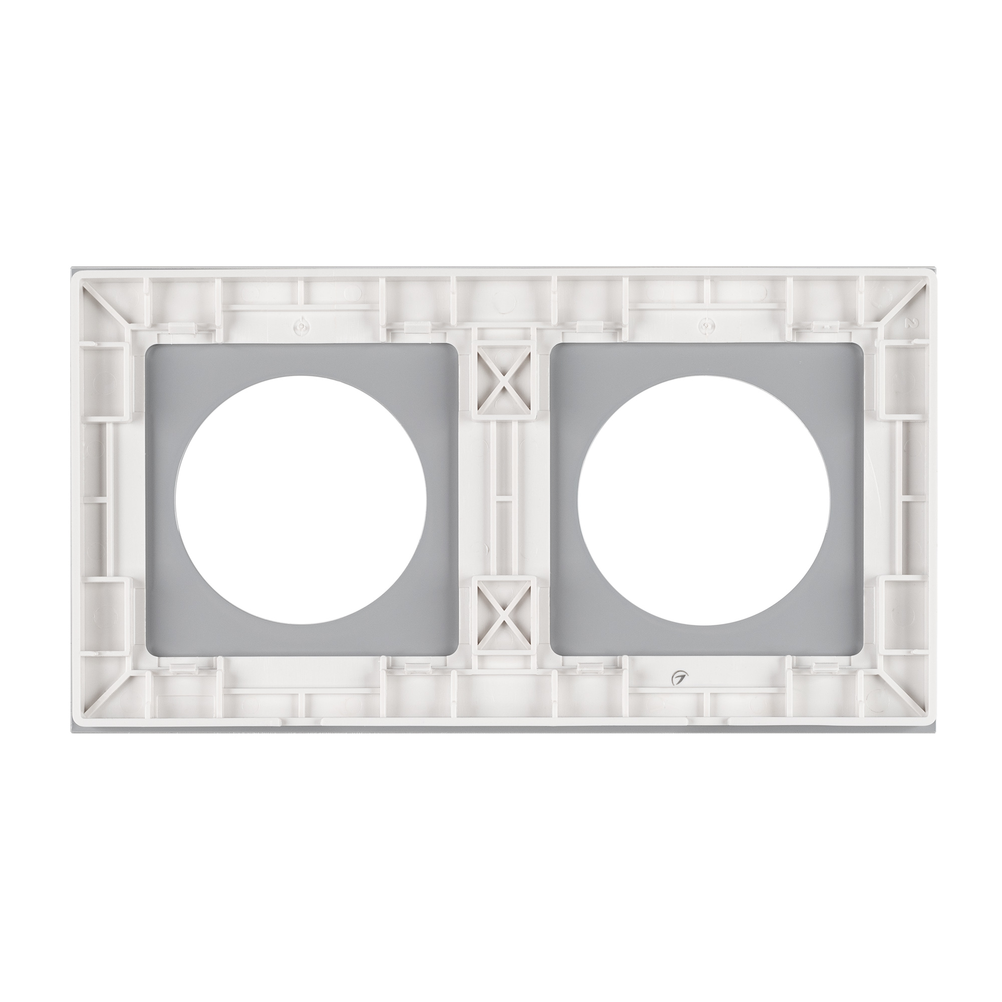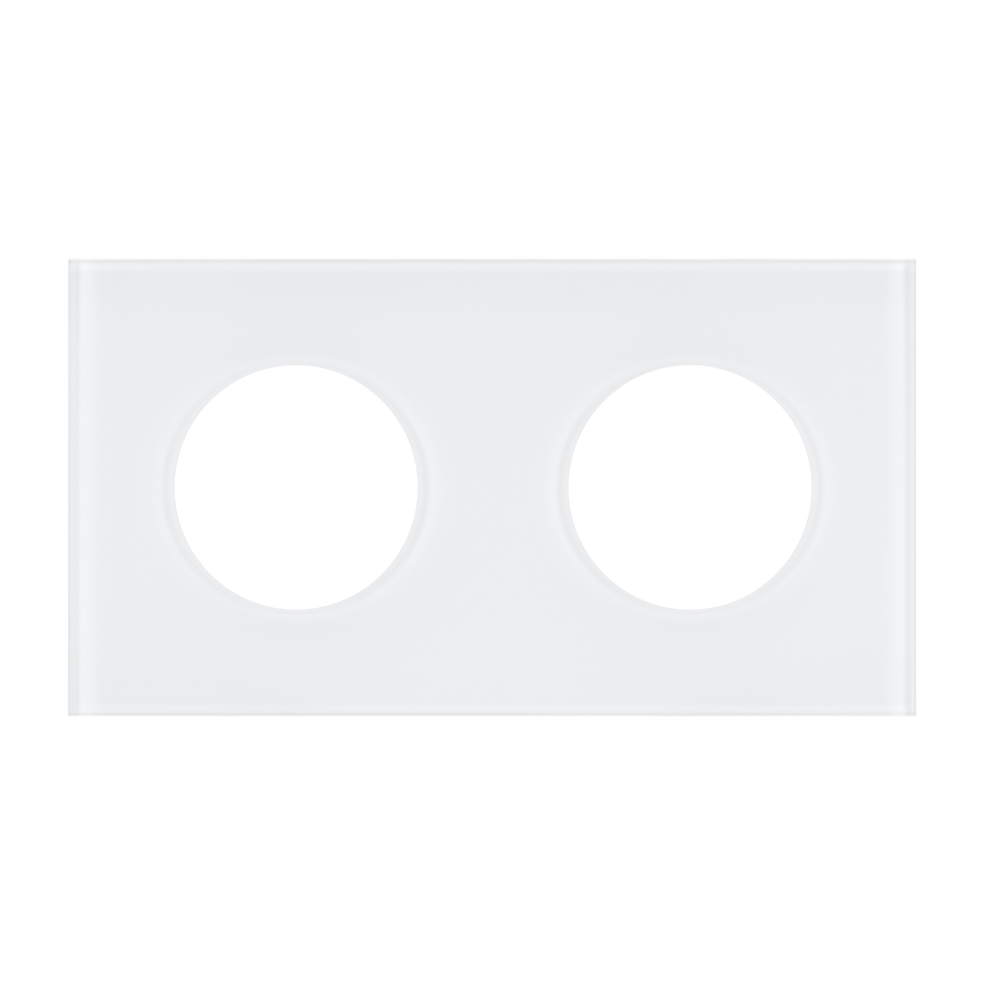 Рамка стеклянная на 2 поста, под встраиваемый механизм. Вырез под функциональную часть круг. Цвет - белый. Ориентации монтажа - горизонтальная.