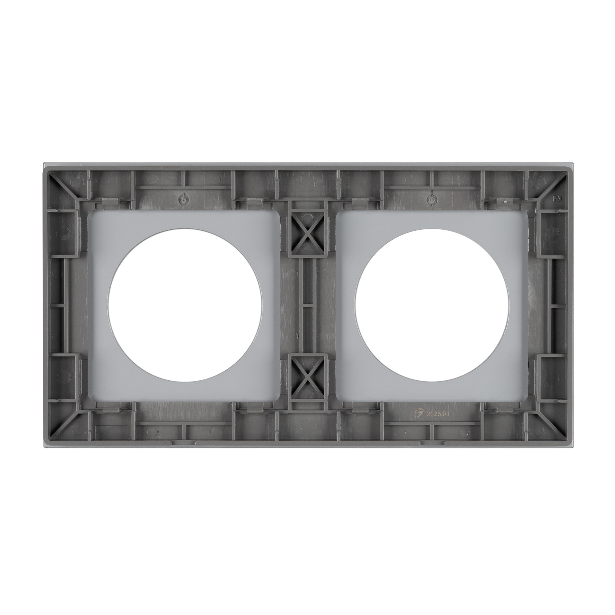Рамка стеклянная на 2 поста, под встраиваемый механизм. Вырез под функциональную часть круг. Цвет - серый. Ориентации монтажа - горизонтальная. Габаритные размеры: длина 153 мм, ширина 82 мм, высота 10 мм. Гарантийный срок 12 мес. Рамка совместима только с механизмами арт. 043741/043739/043740