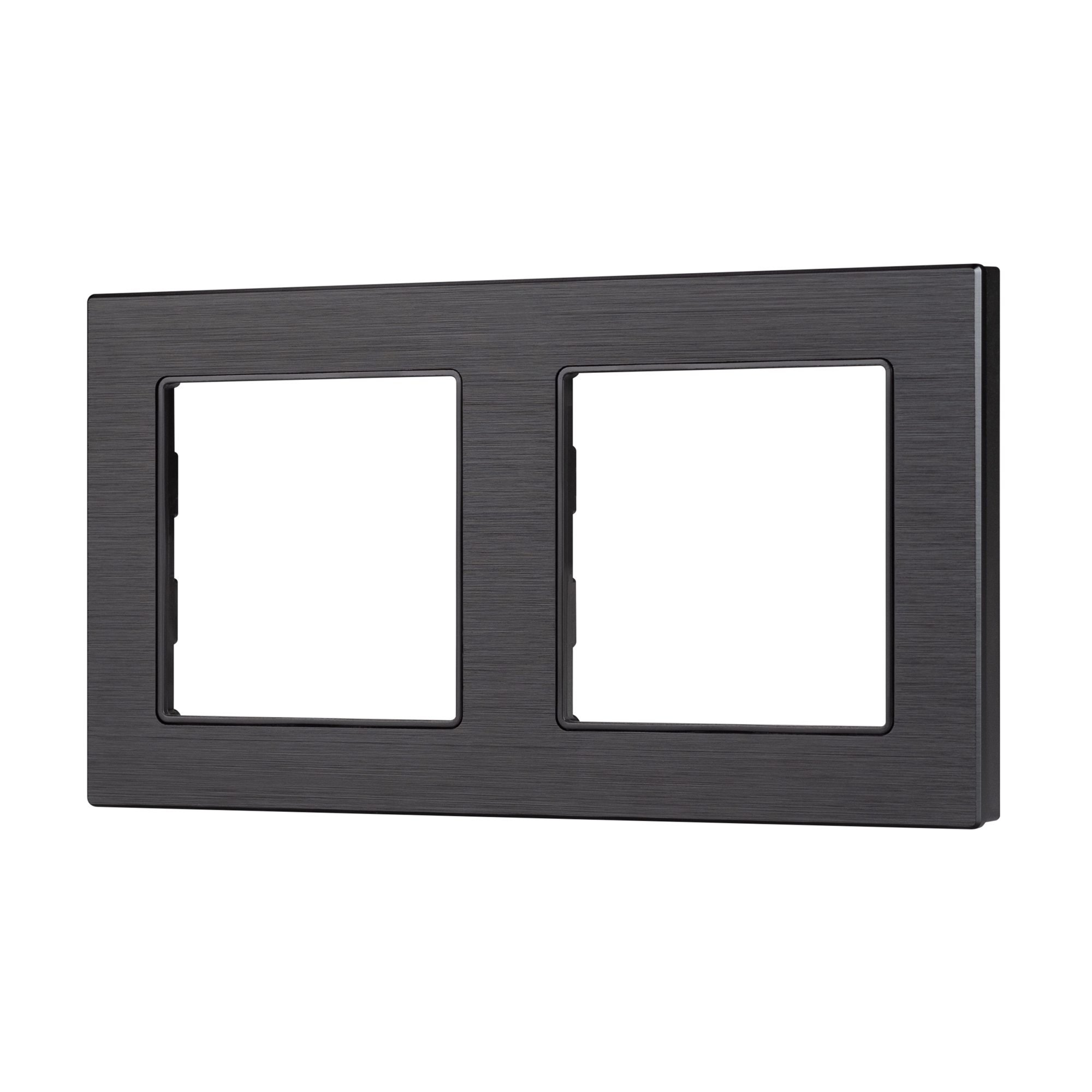 Рамка алюминиевая на 2 пост, под встраиваемый механизм (квадрат). Цвет - черный. Ориентации монтажа - горизонтальная. Габаритные размеры: длина 153 мм, ширина 82 мм, высота 10 мм. Гарантийный срок 12 мес.