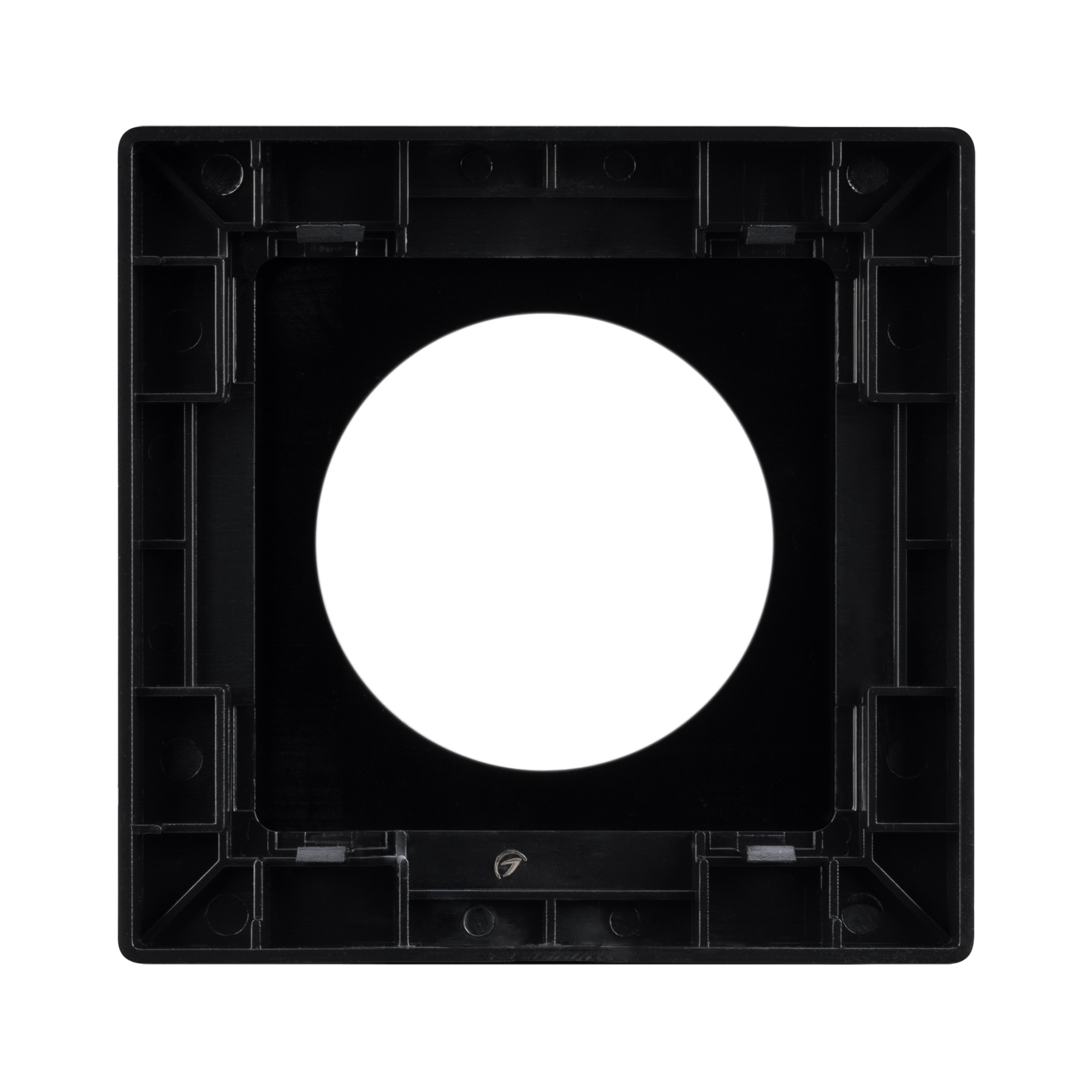 Рамка алюминиевая на 1 пост, под встраиваемый механизм. Вырез под функциональную часть - круг. Цвет - черный. Ориентации монтажа - горизонтальная и вертикальная. Габаритные размеры: длина 82 мм, ширина 82 мм, высота 10 мм. Гарантийный срок 12 мес. Рамка совместима только с механизмами арт. 043739/043740/043741