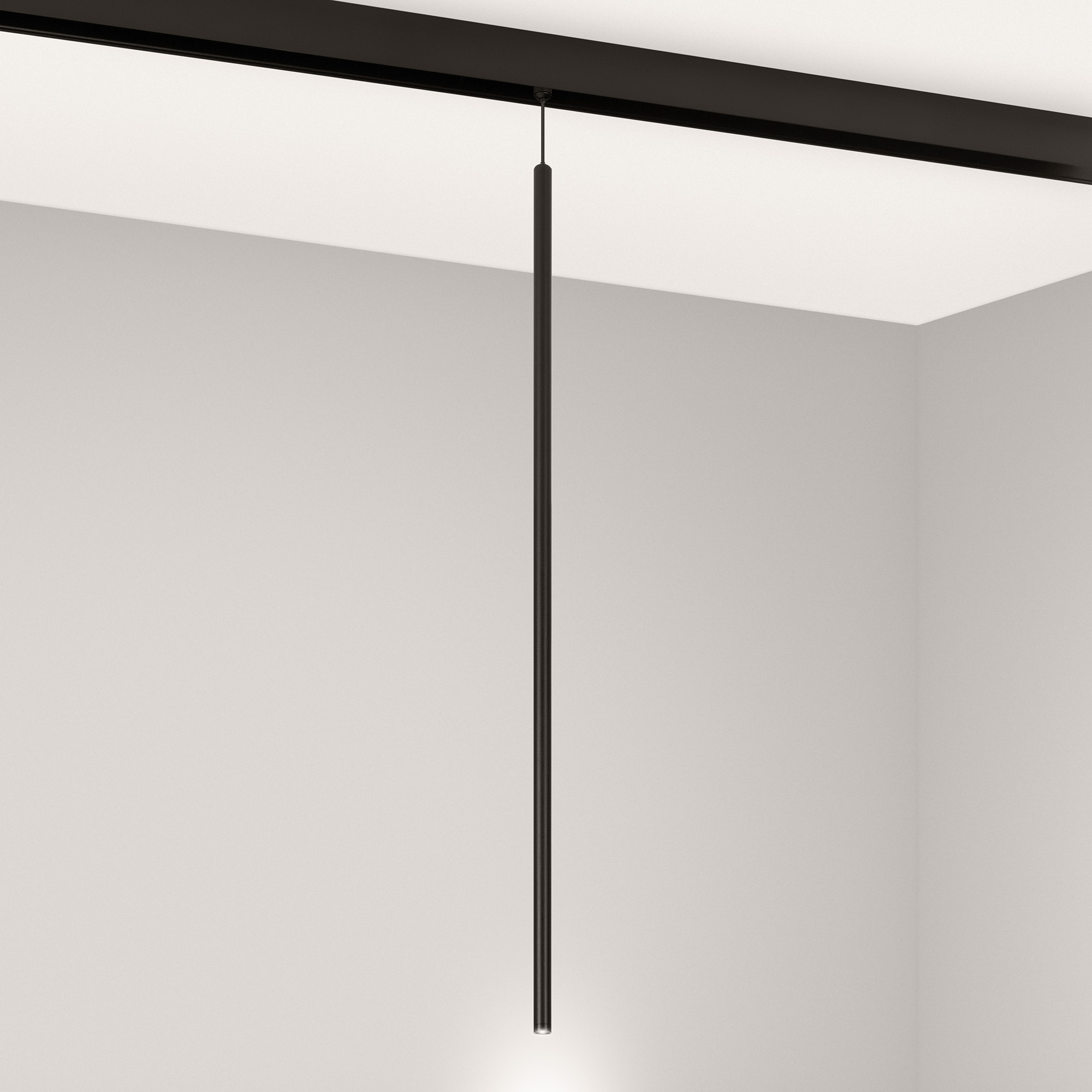 Светильник для магнитных треков MAG-Orient. Мощность 2 Вт, св. поток 90 лм, 45 лм/Вт, 4000 K, CRI>80, угол 20°, Черный цилиндрический корпус из металл, степень защиты IP20. Размер: длина 600 мм, диаметр 12 мм. Длина кабеля 1000мм, подвес нерегулируемый.