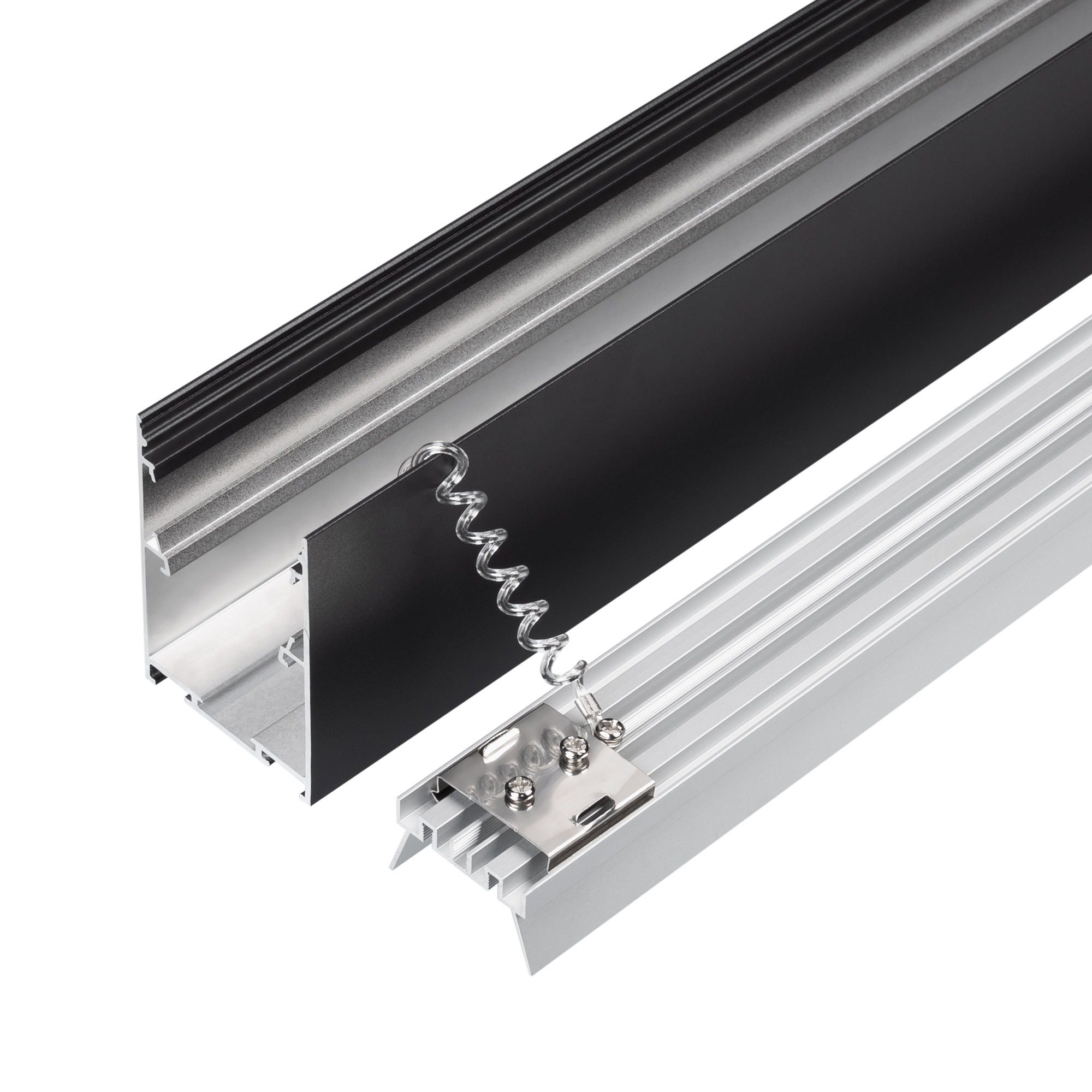 Подвесной/накладной профиль черного цвета из алюминия для основного освещения и контурной подсветки. Возможность установки антибликовой решетки Honeycomb поверх экрана позволяет получить более комфортное для глаз освещение. Отсек для блока питания (47,8х27,8 мм) и съемная площадка для светодиодной ленты значительно облегчают сервисное обслуживание осветительного оборудования. Габаритные размеры профиля составляют 2000 мм в длину, 51,2 мм в ширину и 75,7 мм в высоту. Площадки для установки светодиодных лент позволяют использовать ленты шириной до 28 мм и мощностью до 46 Вт/м. Это обеспечивает гибкость в выборе светодиодных лент и создает потрясающие световые решения. Экраны, заглушки и другие аксессуары не включены в комплект и приобретаются отдельно. Цена указана за 1 метр профиля. Отличное решение для создания современных световых проектов.