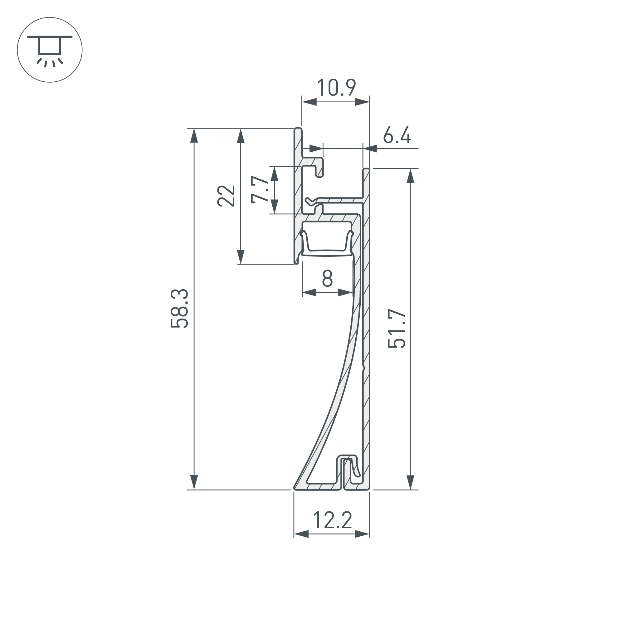 Встраиваемый двухкомпонентный алюминиевый профиль-плинтус с накладным фланцем черного цвета для создания эффекта парящей стены. Габаритные размеры профиля составляют 2000 мм в длину, 12,2 мм в ширину и 58,3 мм в высоту. Площадка для установки светодиодных лент позволяет использовать ленту шириной до 8 мм и мощностью до 20 Вт/м. Это обеспечивает гибкость в выборе светодиодных лент и создает потрясающие световые решения. Экран, заглушки и другие аксессуары не включены в комплект и приобретаются отдельно. Цена указана за 1 метр профиля. Отличное решение для создания современных световых проектов.