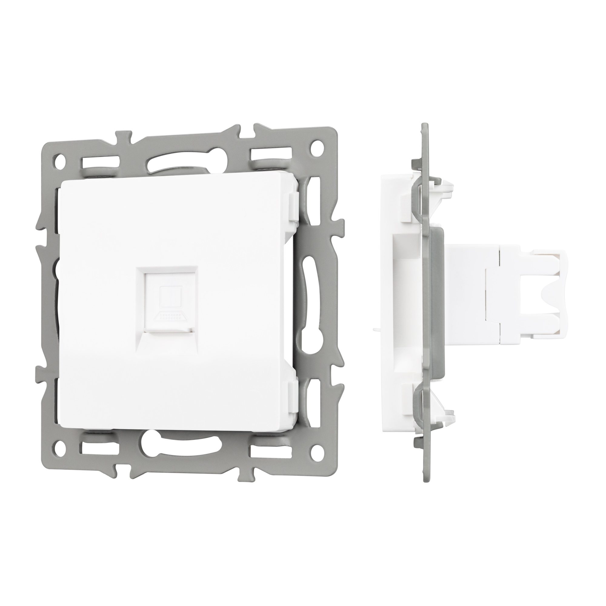 Механизм компьютерной розетки на 1 пост 6-й категории (CAT6), с суппортом из алюминия. Цвет - белый. Степень пылевлагозащиты - IP20.