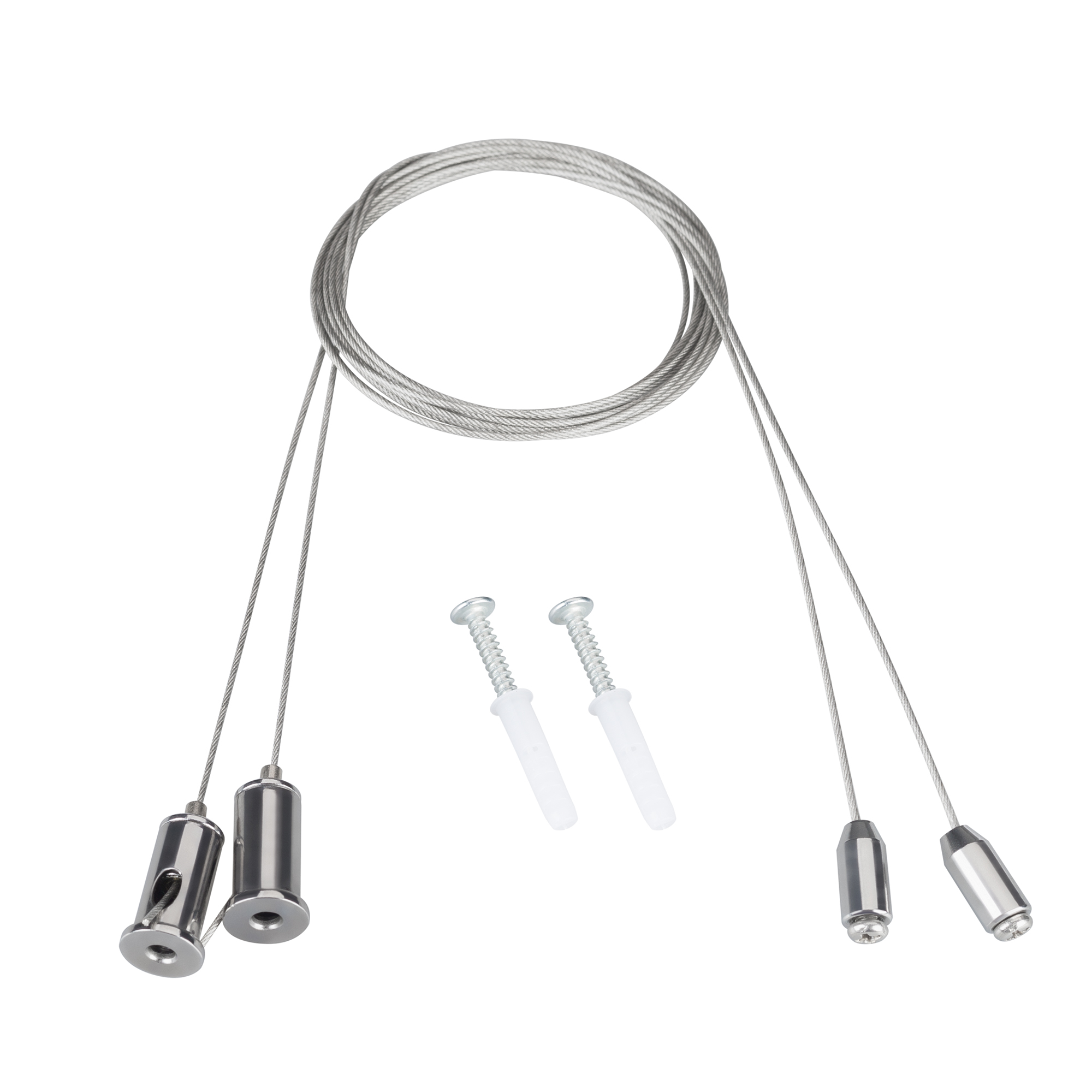 Комплект для подвеса аварийных панелей EMG-VECTOR. В комплекте: трос 1.5м - 2шт, винт с площадкой 9мм - 2шт., дюбель с шурупом - 2 шт. Крепится непосредственно к отверстиям в панели.