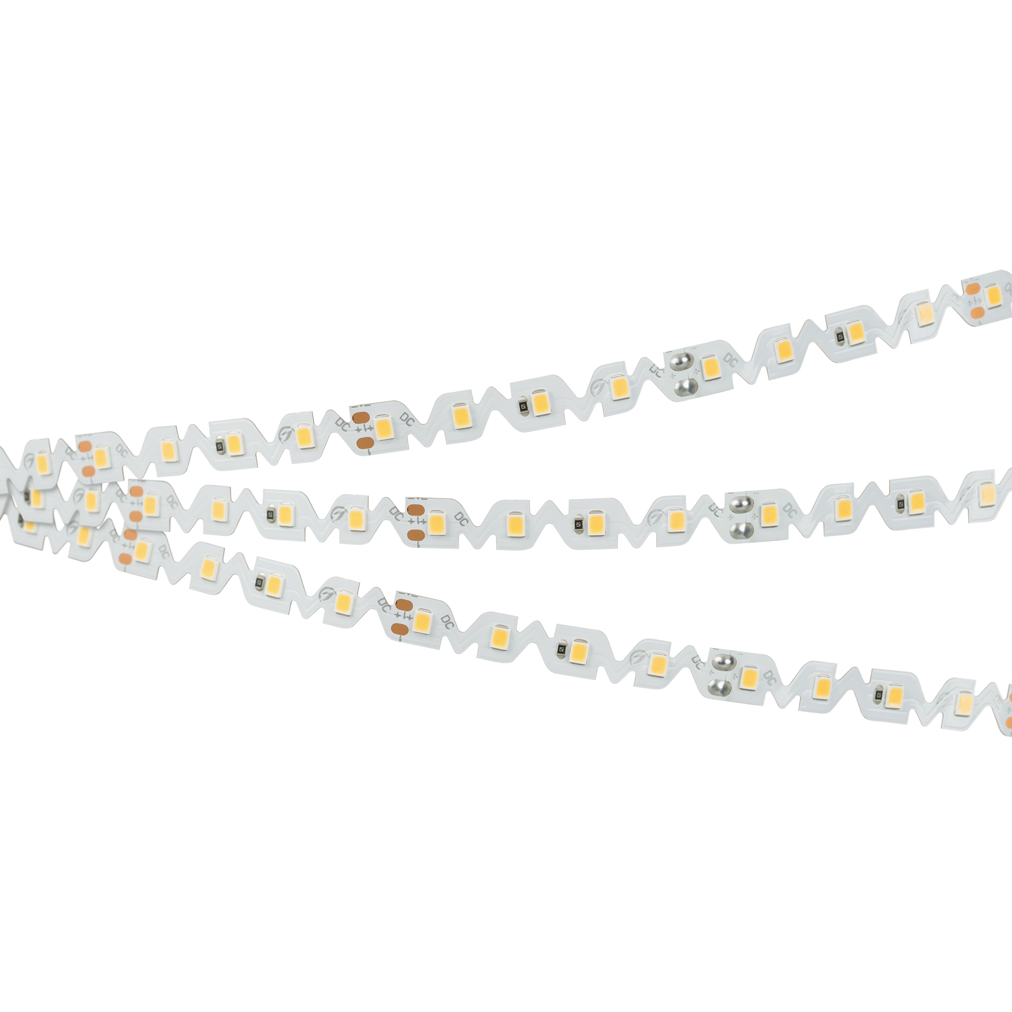 Светодиодная лента RZ серии A80 шириной 8 мм, мощностью 8 Вт/м, со специальной формой платы в виде волны позволяет изгибать ленту на плоскости. Максимальный диаметр изгиба на плоскости 60 мм. Вертикальный радиус изгиба 60 мм. Напряжение питания 24 В. Светодиоды SMD 2835 (80 шт/м) теплого цвета свечения (3000K). Высокий индекс цветопередачи CRI>90. Минимальный отрезок 50 мм (4 светодиода). Подходит для установки в криволинейные пазы. Подсветка букв, ниш, витрин, вывесок, криволинейных форм.
