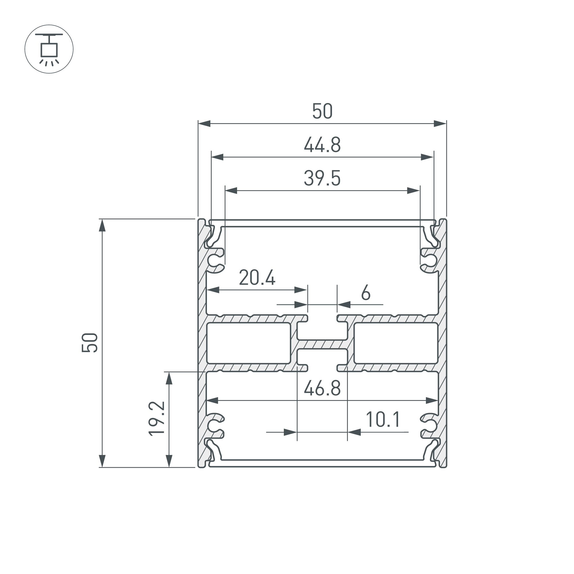 Подвесной профиль черного цвета из анодированного алюминия с двусторонним свечением вверх-вниз для основного и акцентного освещения. Габаритные размеры профиля составляют 3000 мм в длину, 50 мм в ширину и 50 мм в высоту. Площадки для установки светодиодных лент позволяют использовать по одной ленте шириной от 19 до 46 мм и мощностью до 26 Вт/м каждая или по две ленты шириной до 20 мм и мощностью 13 Вт/м каждая. Это обеспечивает гибкость в выборе светодиодных лент и создает потрясающие световые решения. Экраны, заглушки и другие аксессуары не включены в комплект и приобретаются отдельно. Цена указана за 1 метр профиля. Отличное решение для создания современных световых проектов.