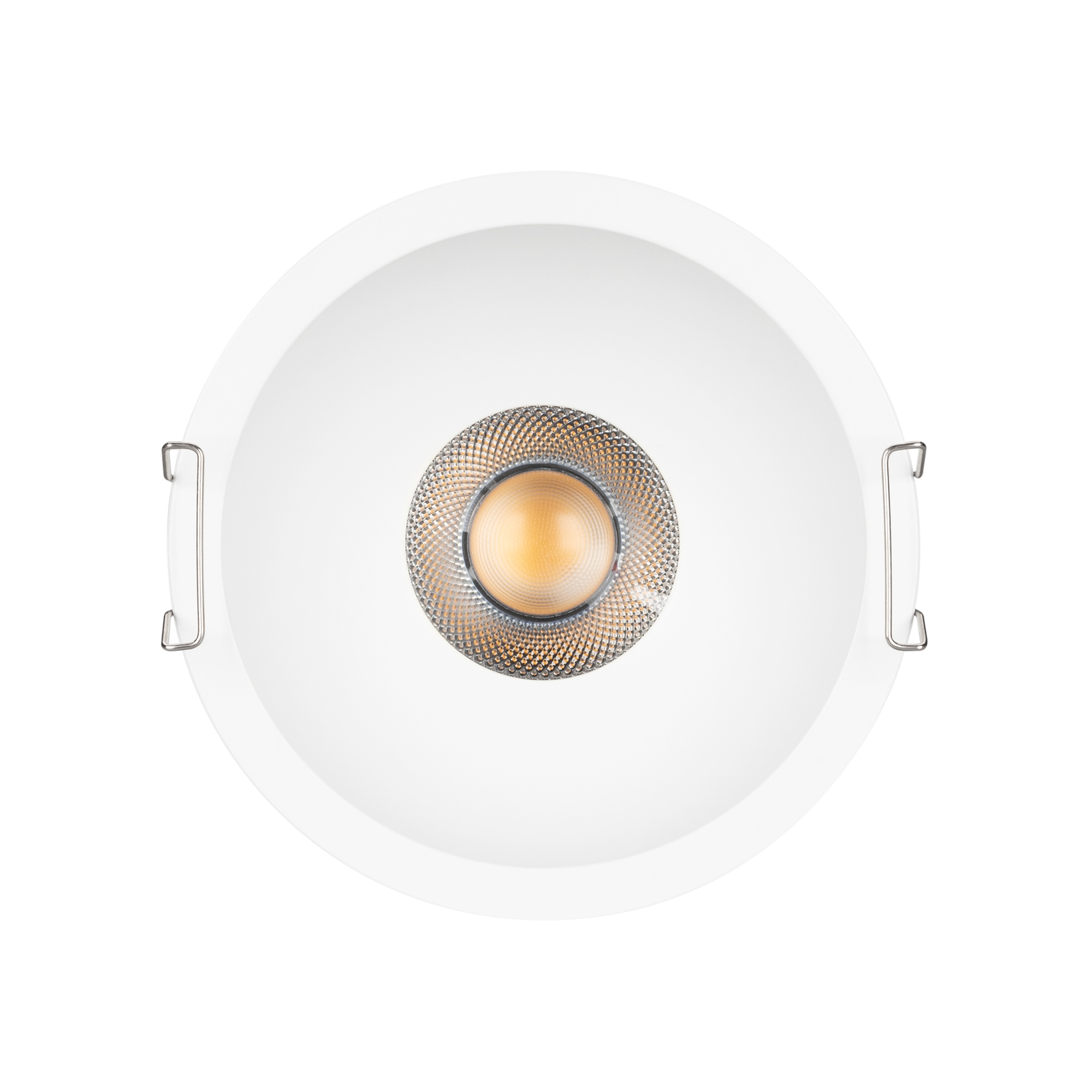 Встраиваемый светильник даунлайт. Мощность 20 Вт, св. поток 1810 лм, 90 лм/Вт, тёплый 3000 K, CRI>90, угол 50°, напряжение питания 230 В. Белый круглый корпус из алюминия, степень защиты IP20. Размер: диаметр 123 мм, высота 68 мм. Монтаж встраиваемый, установочное отверстие: диаметр 110 мм. UGR<14. Драйвер 27-42 В, 500 мА, пульсация <2%.