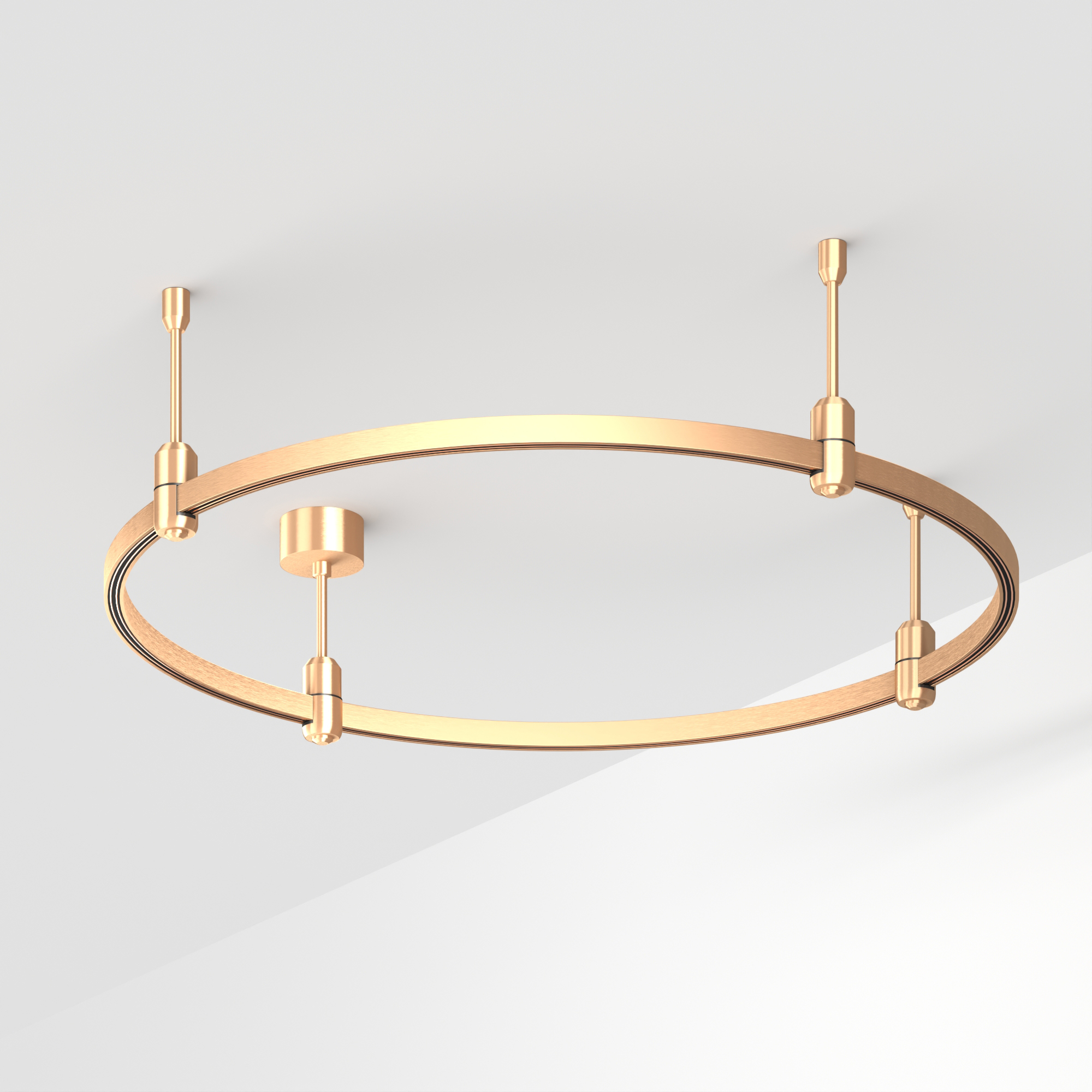 Подвесная конструкция APRIORI, форма круг. В комплекте треки с аксессуарами и жесткими подвесами длиной 200мм Размер: диаметр 800мм, высота 22мм. Монтируется подвесным способом. Шинопровод рассчитан на работу с безопасным напряжением DC48В. Изготавливается из алюминия, анодированного в цвет светлое золото. Светильники и источники питания приобретаются отдельно.