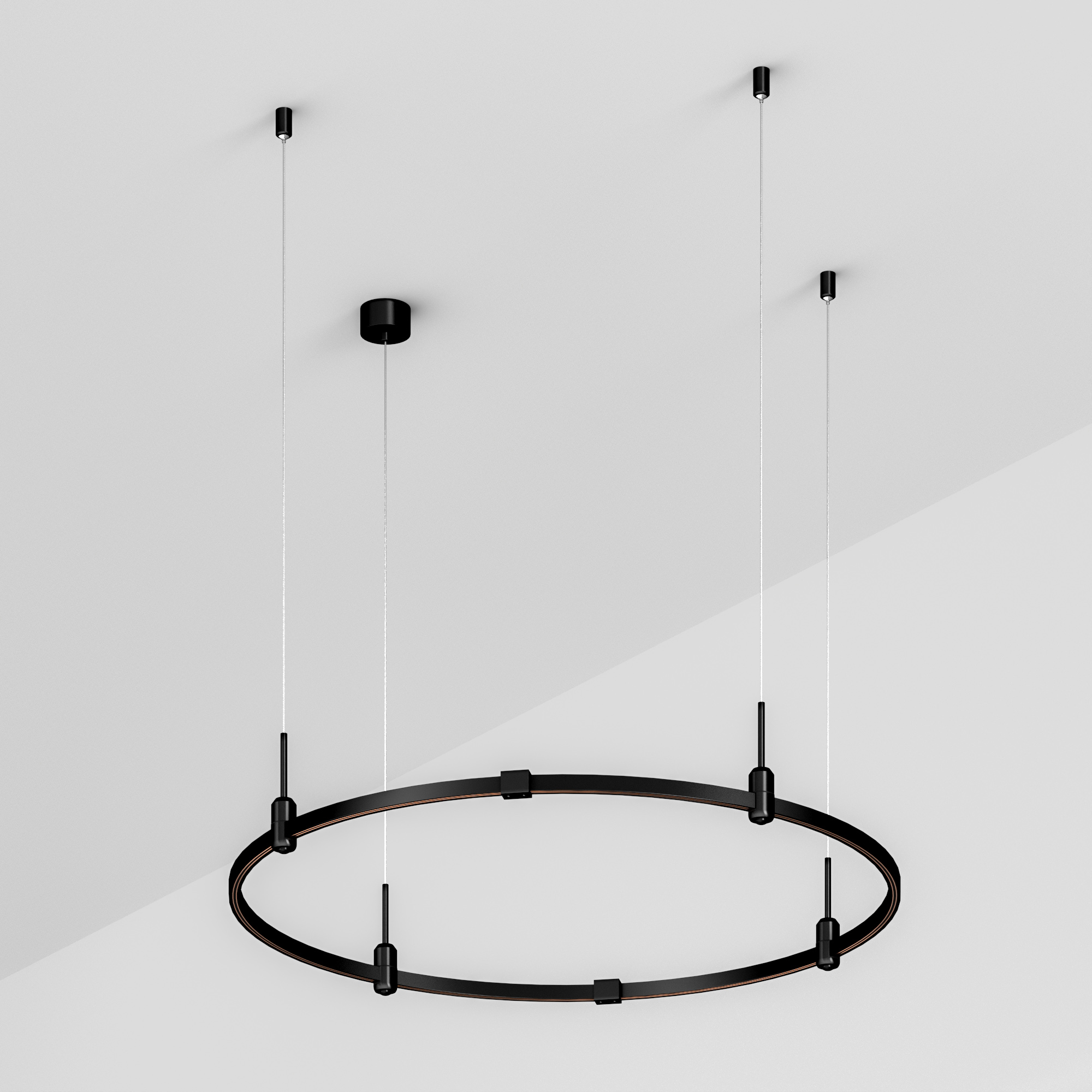 Подвесная конструкция APRIORI, форма круг. В комплекте треки с аксессуарами и гибкими подвесами. DC48V. Материал алюминий, цвет черный. Размер: диаметр 1000мм, высота 22мм. Светильники и источники питания приобретаются отдельно.