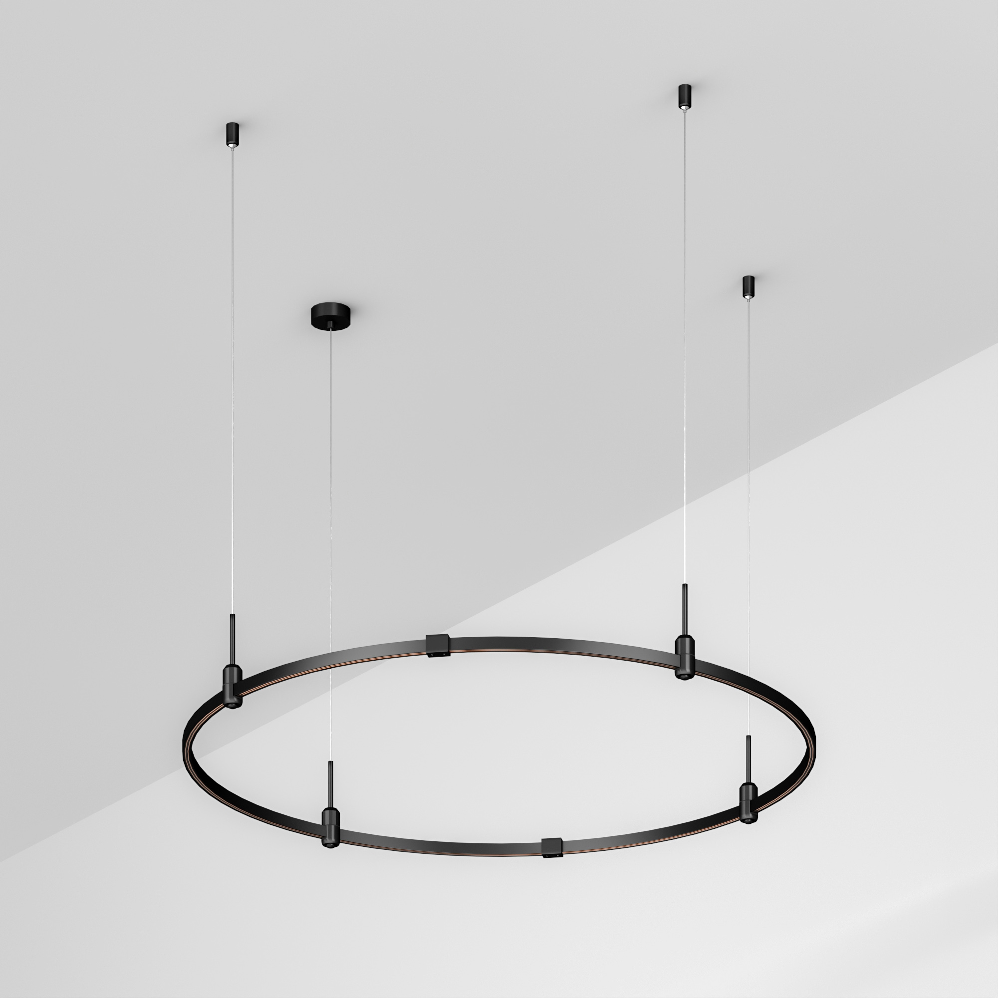 Подвесная конструкция APRIORI, форма круг. В комплекте треки с аксессуарами и гибкими подвесами. DC48V. Материал алюминий, цвет черный. Размер: диаметр 1200мм, высота 22мм. Светильники и источники питания приобретаются отдельно.